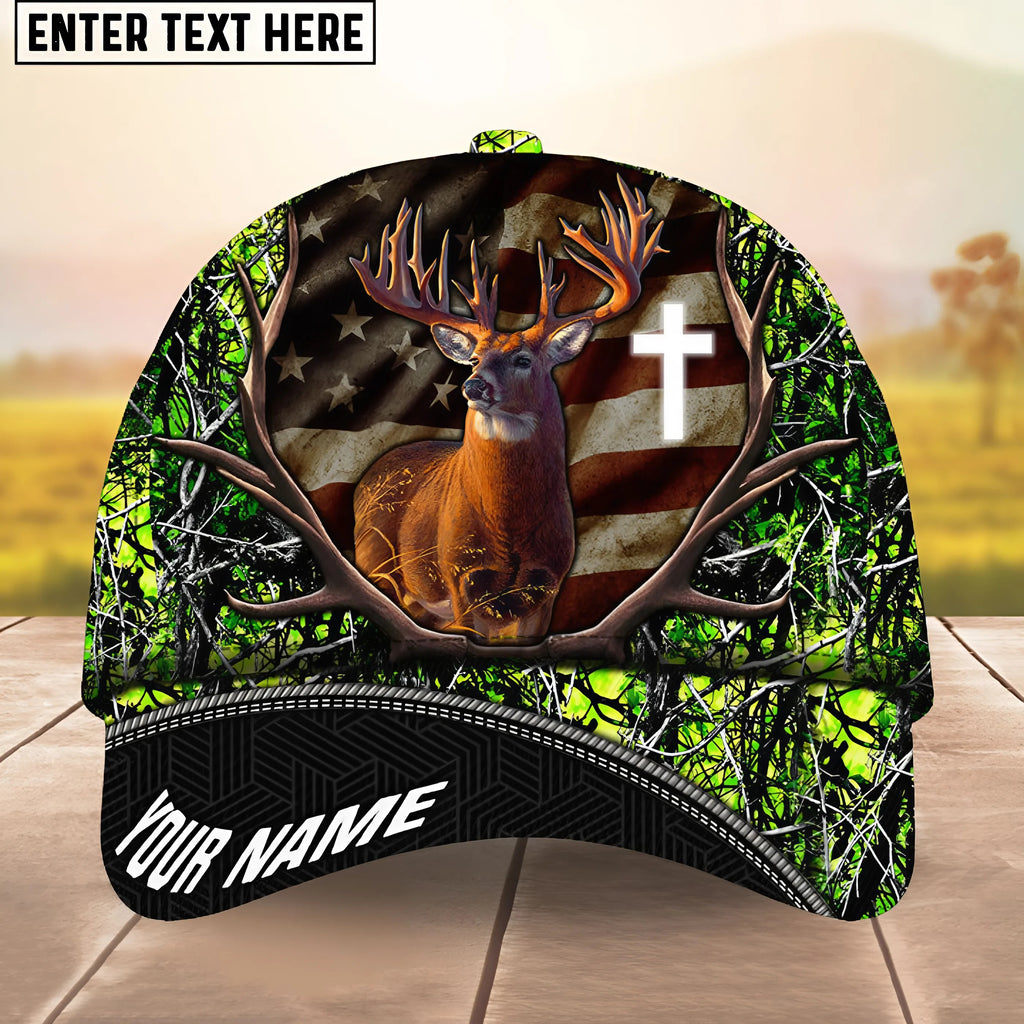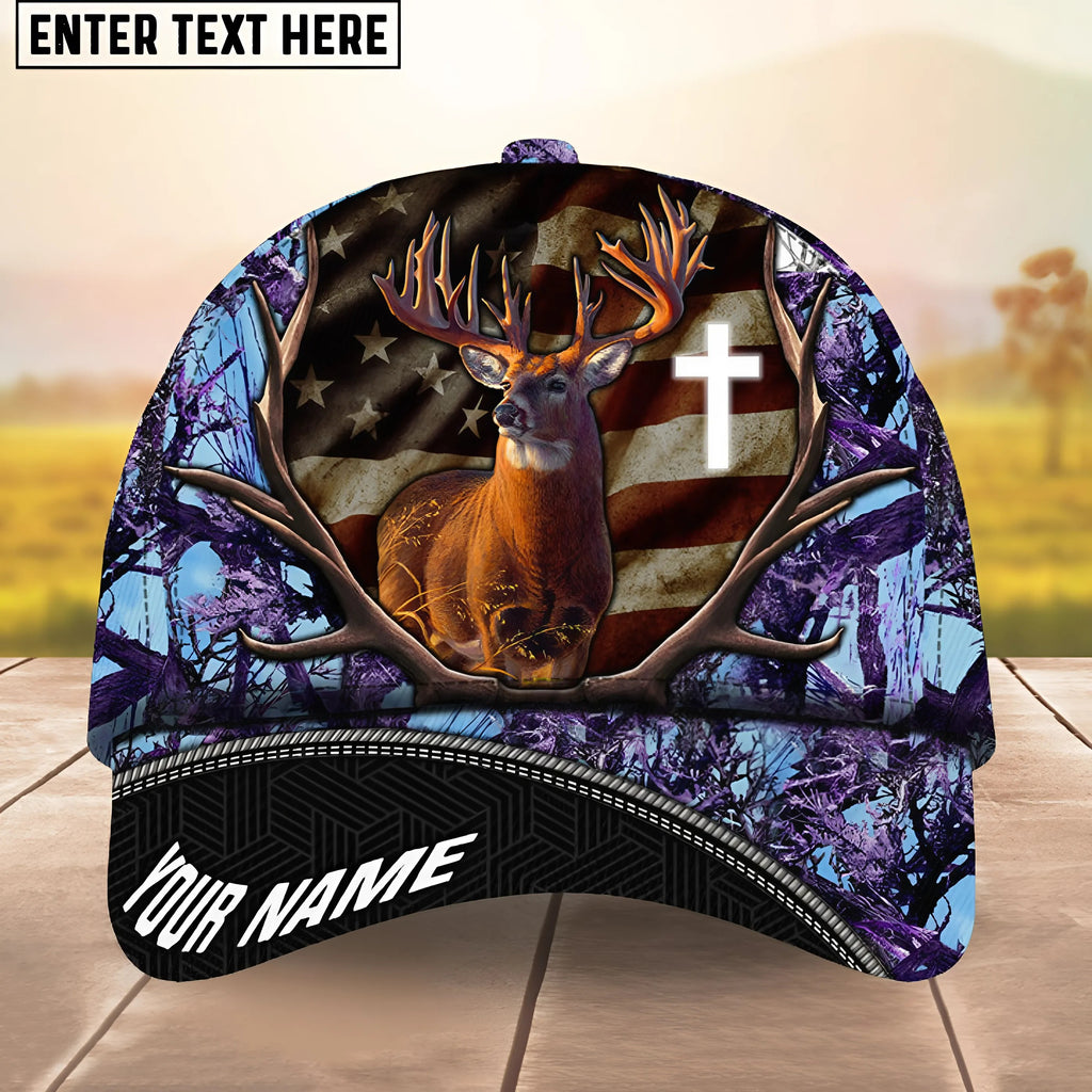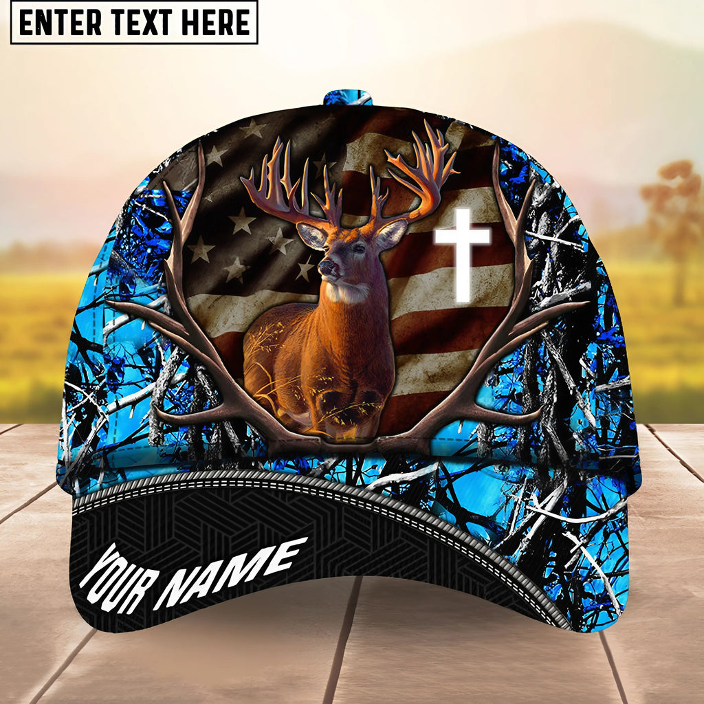 BlueJose Deer Hunting USA Flag Cross Jesus Personalized Cap 3D Printed Multicolor (6 colors)