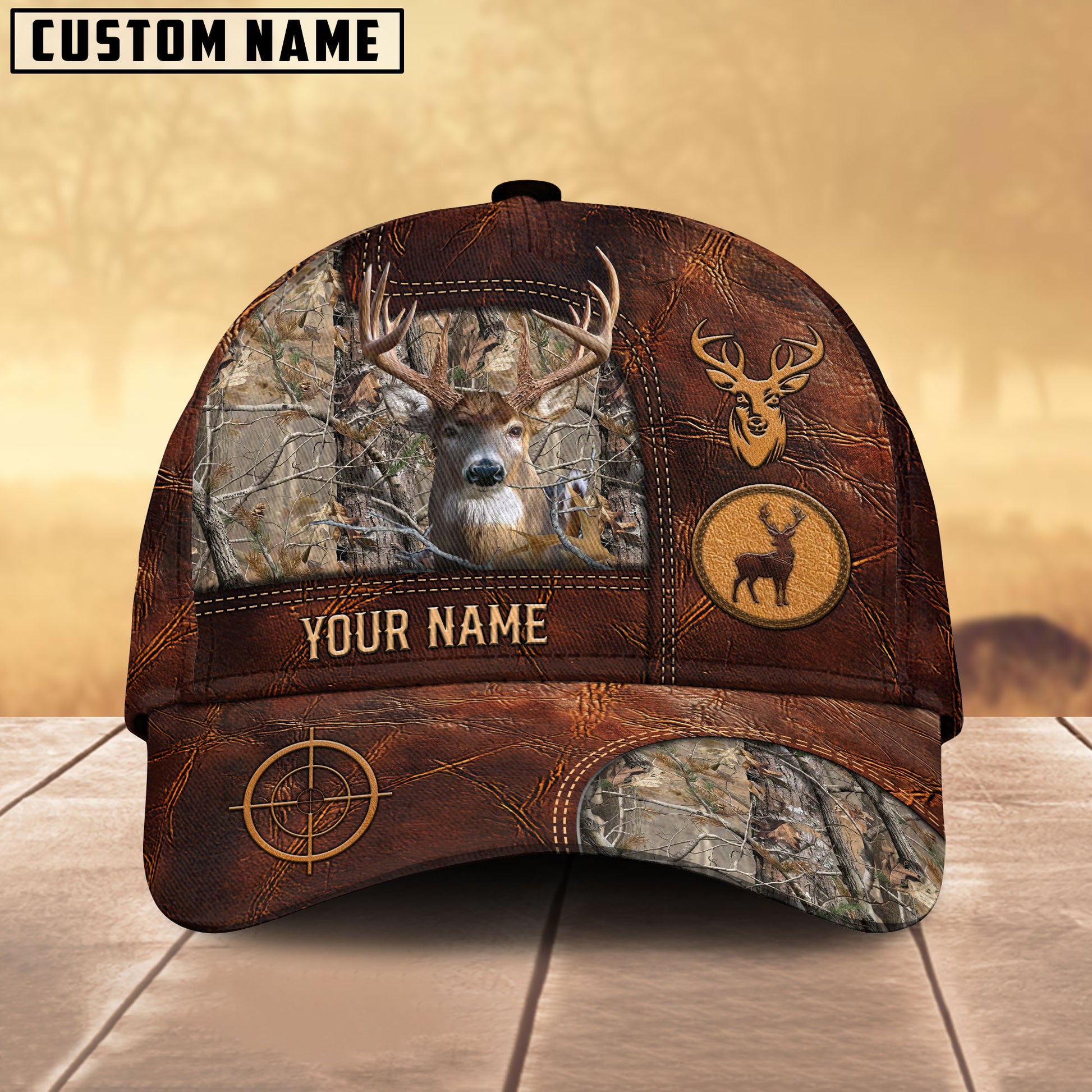 BlueJose Deer Leather Target Multicolor Options Personalized Name 3D Cap