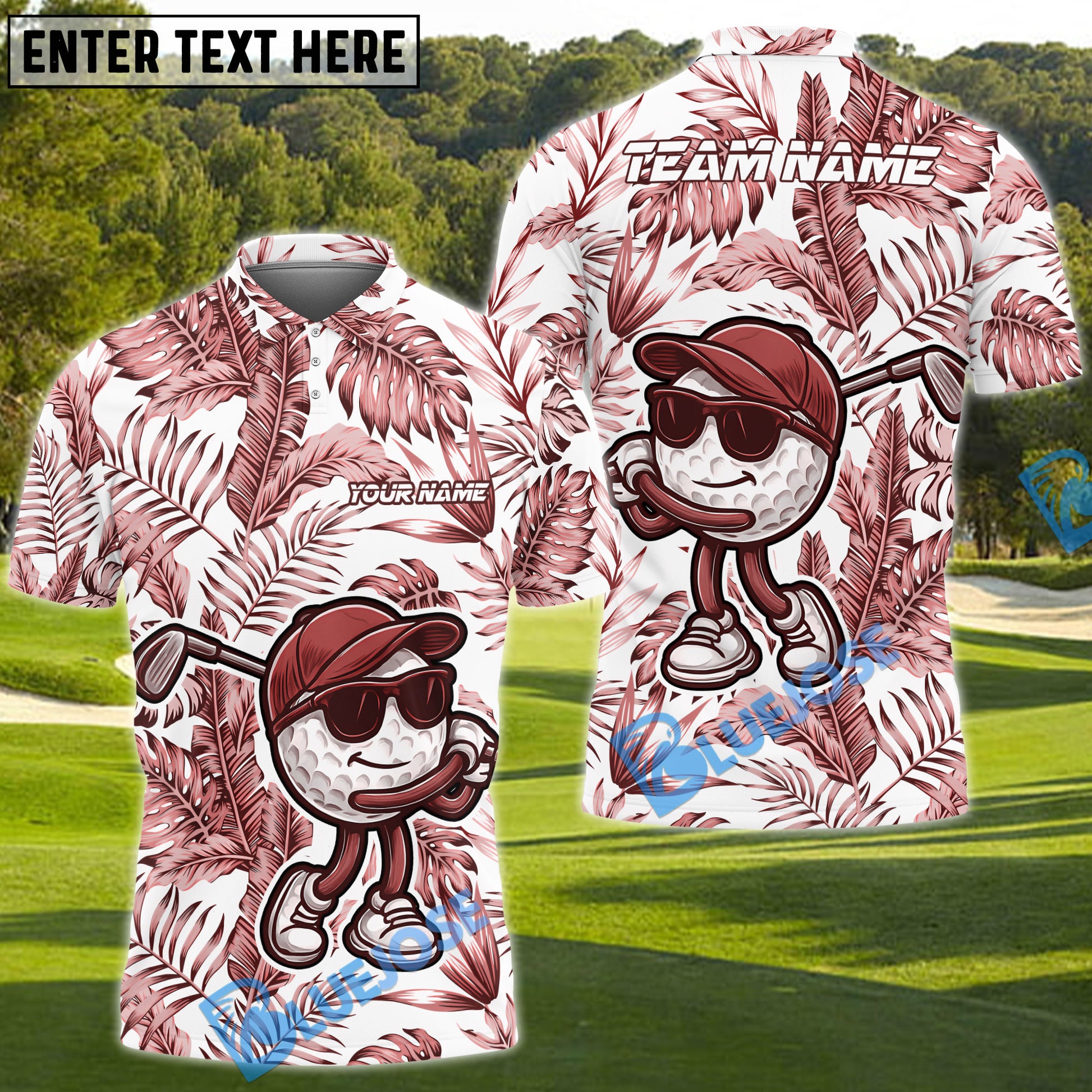 BlueJose Funny Golf Ball Tropical Leaf Customized Name, Team Name 3D Shirts (4 Colors)