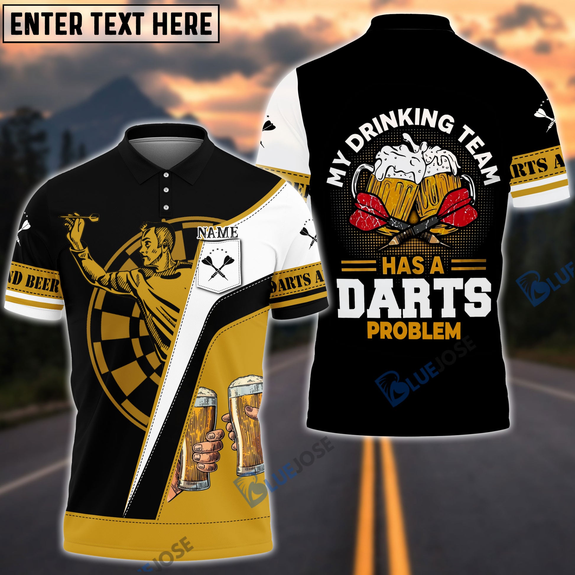 BlueJose Drinkers Play Darts Personalized Name, Team Name 3D Pocket Polo