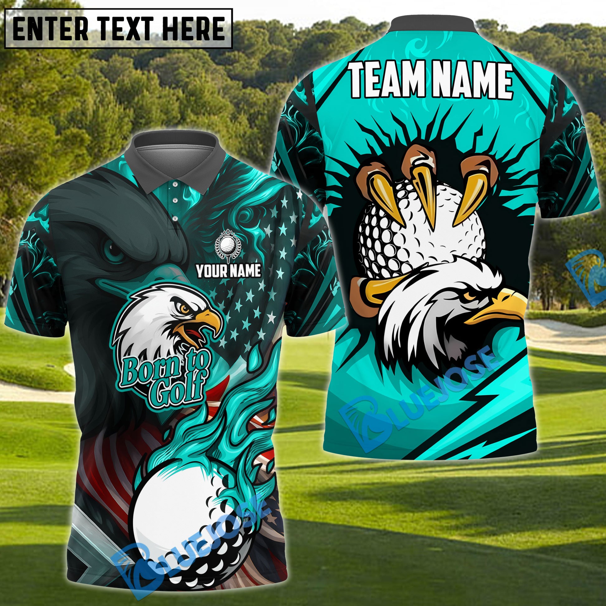 BlueJose Eagle Fire Golf Polo Shirt, Customized Name & Team Name 3D Shirts (4 Colors)