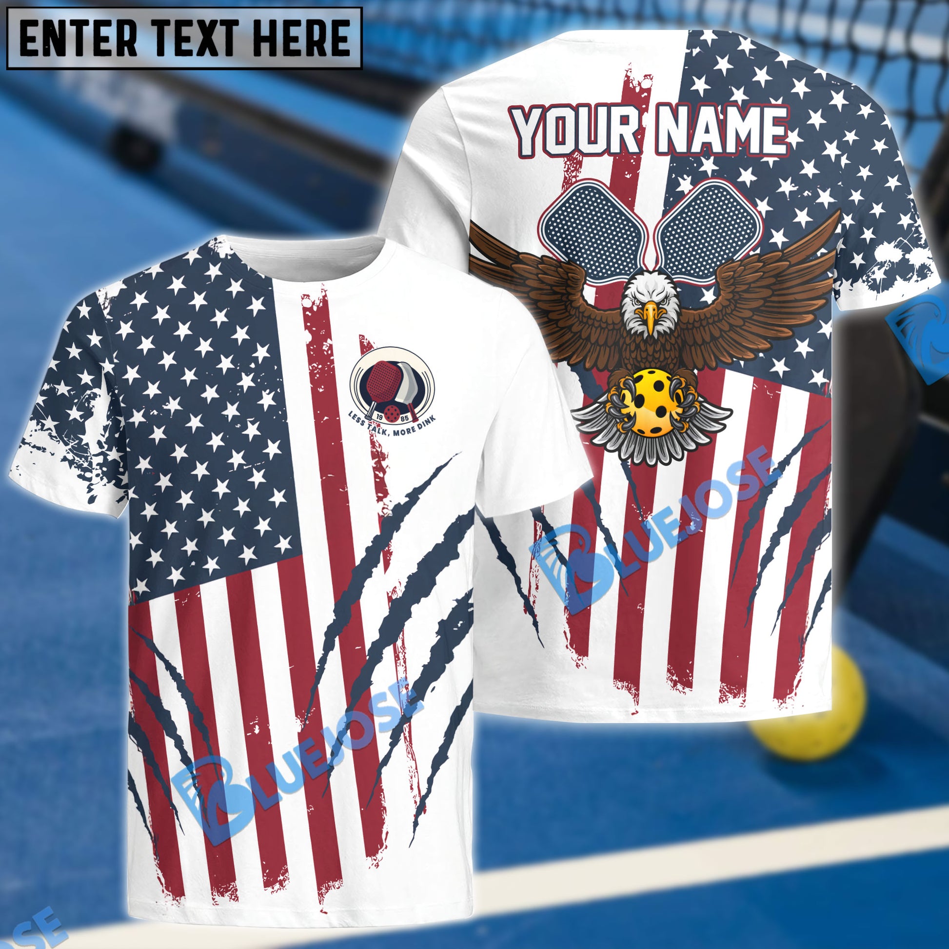 BlueJose Eagle Scratches American Flag Pickleball Personalized Name, Team Name Unisex Shirt