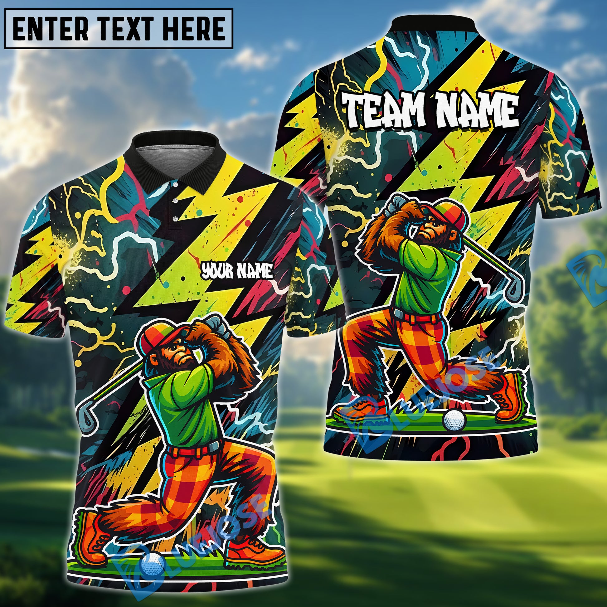 BlueJose Electric Swing Golf Shirt, Customized Name & Team Name 3D Shirts (4 Colors)