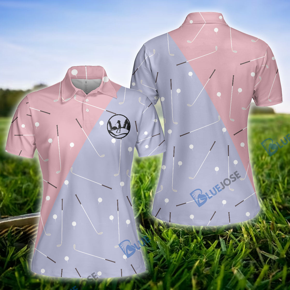 BlueJose Elegant Golf Girl Seamless Pattern Women Polo Shirt