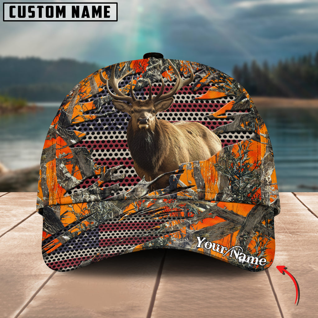 BlueJose Elk Hunting American Flag Camo Crack Personalized Cap (2 Colors)