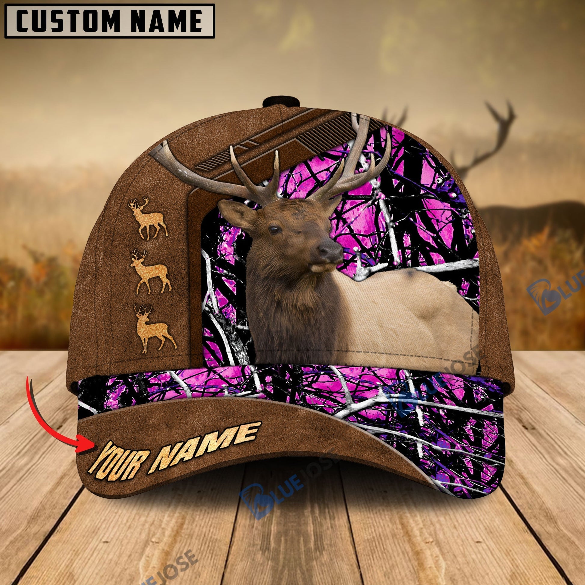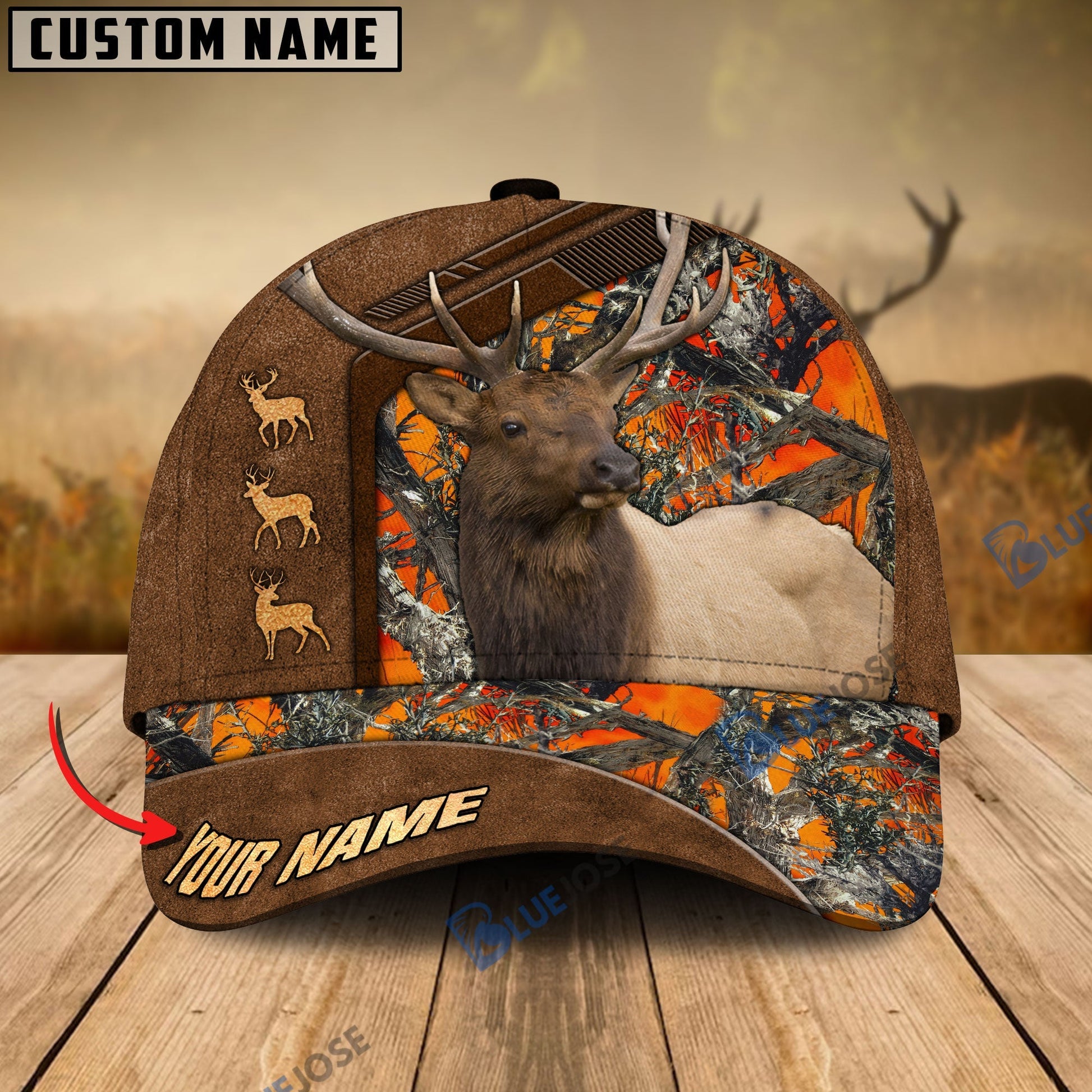 BlueJose Elk Hunting Premium Brown Pattern Personalized Name Cap