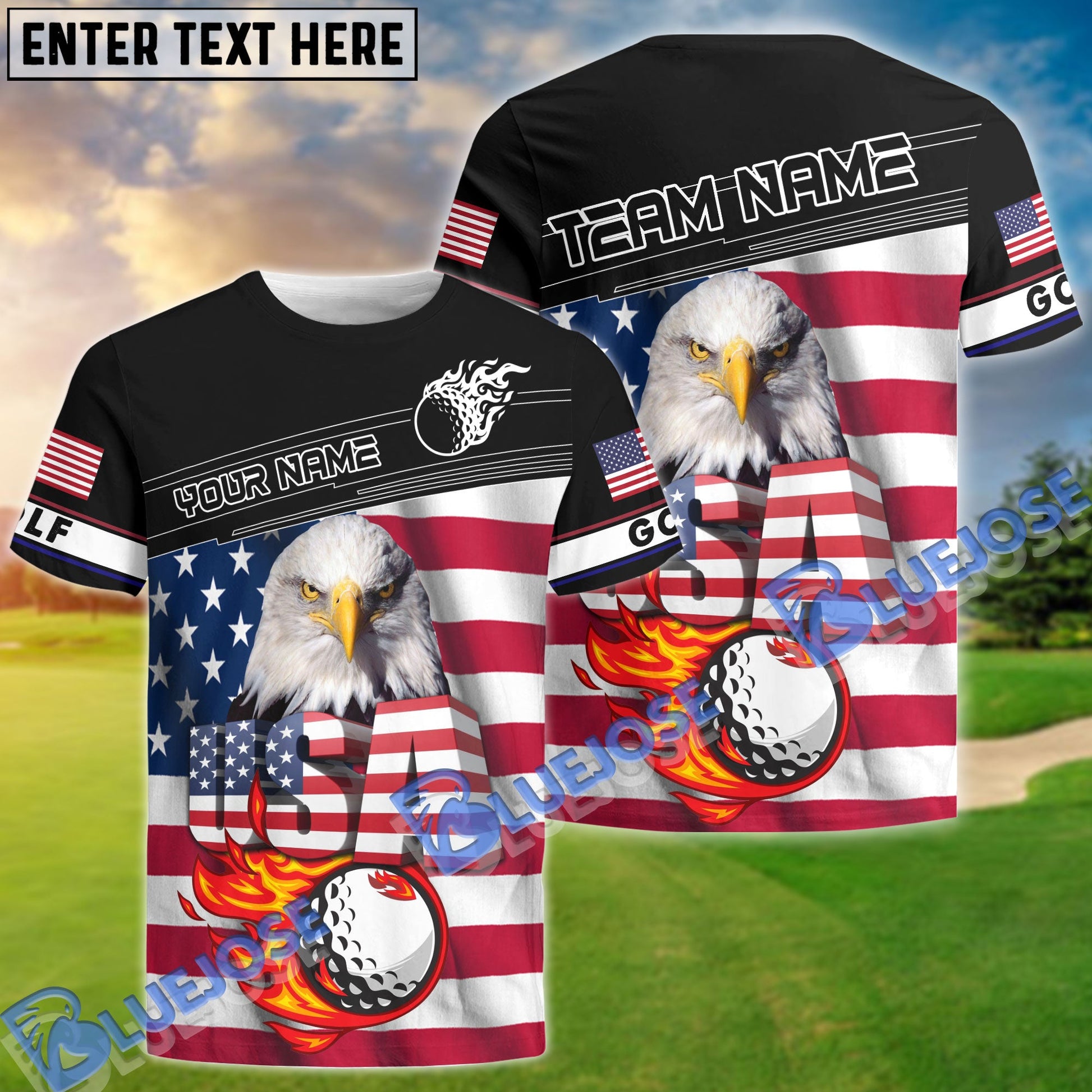 BlueJose Fire Golf Ball USA Eagle Personalized Name, Team Name 3D Shirt