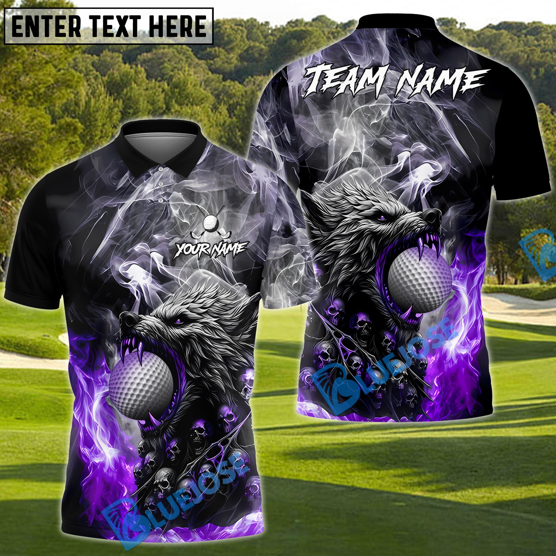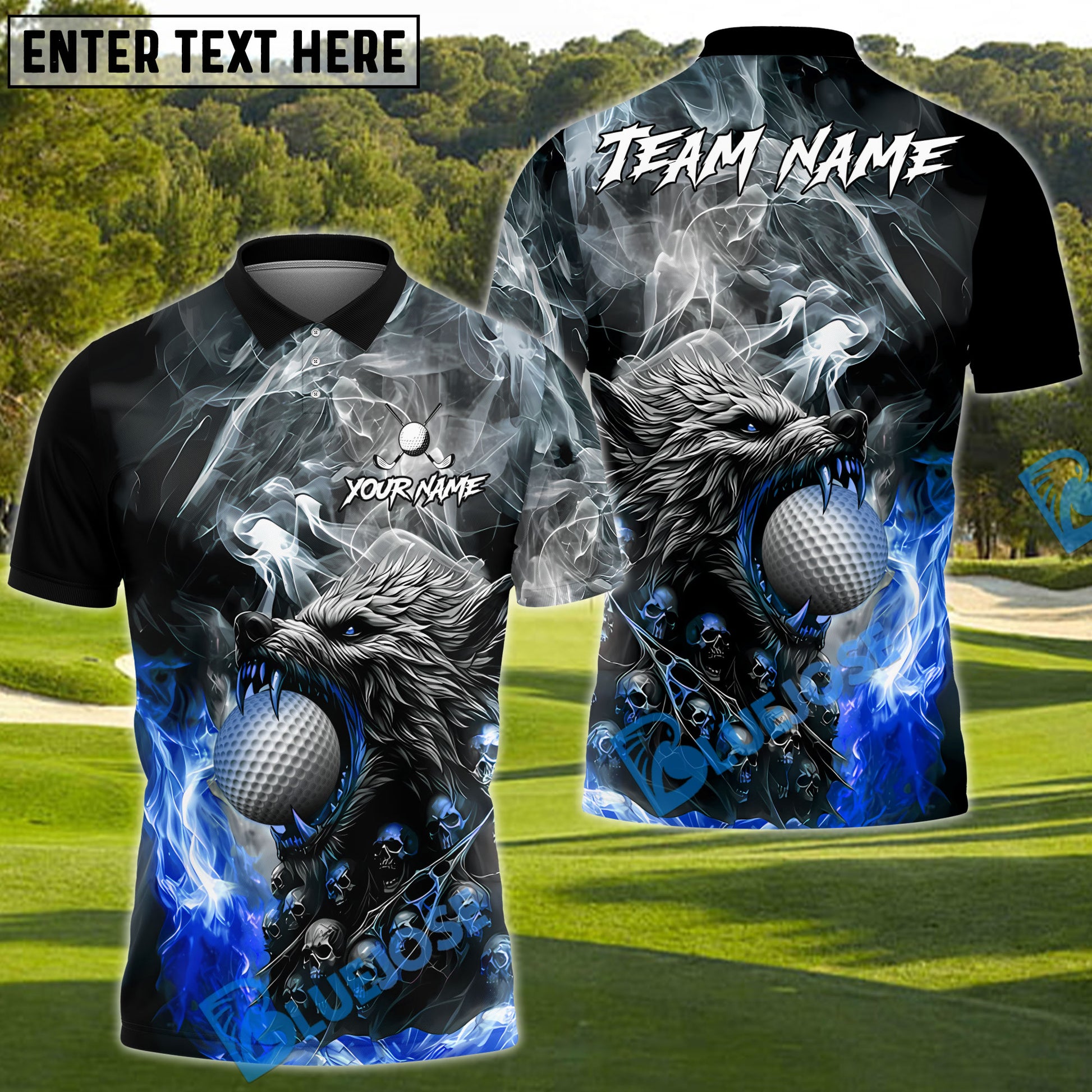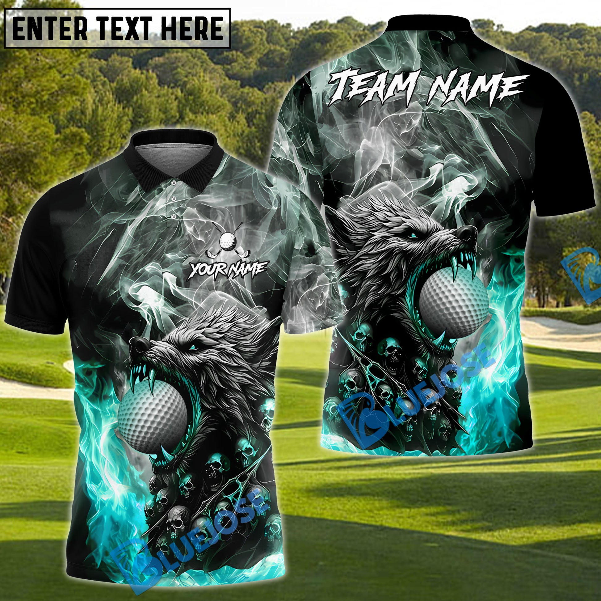 BlueJose Fire Wolf Polo Golf Shirt, Customized Name & Team Name 3D Shirts (4 Colors)