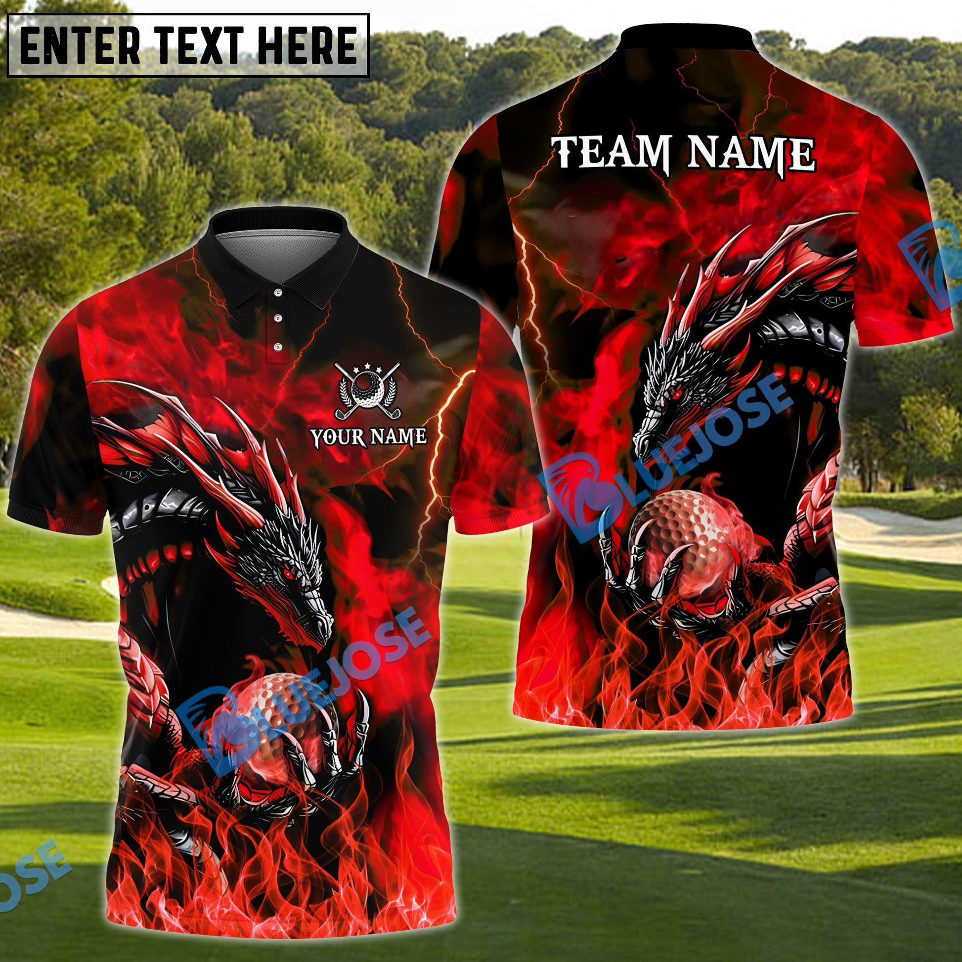 BlueJose Dragon Golf Fire Lightning Shirt Customized Name, Team Name 3D Shirts (4 Colors)