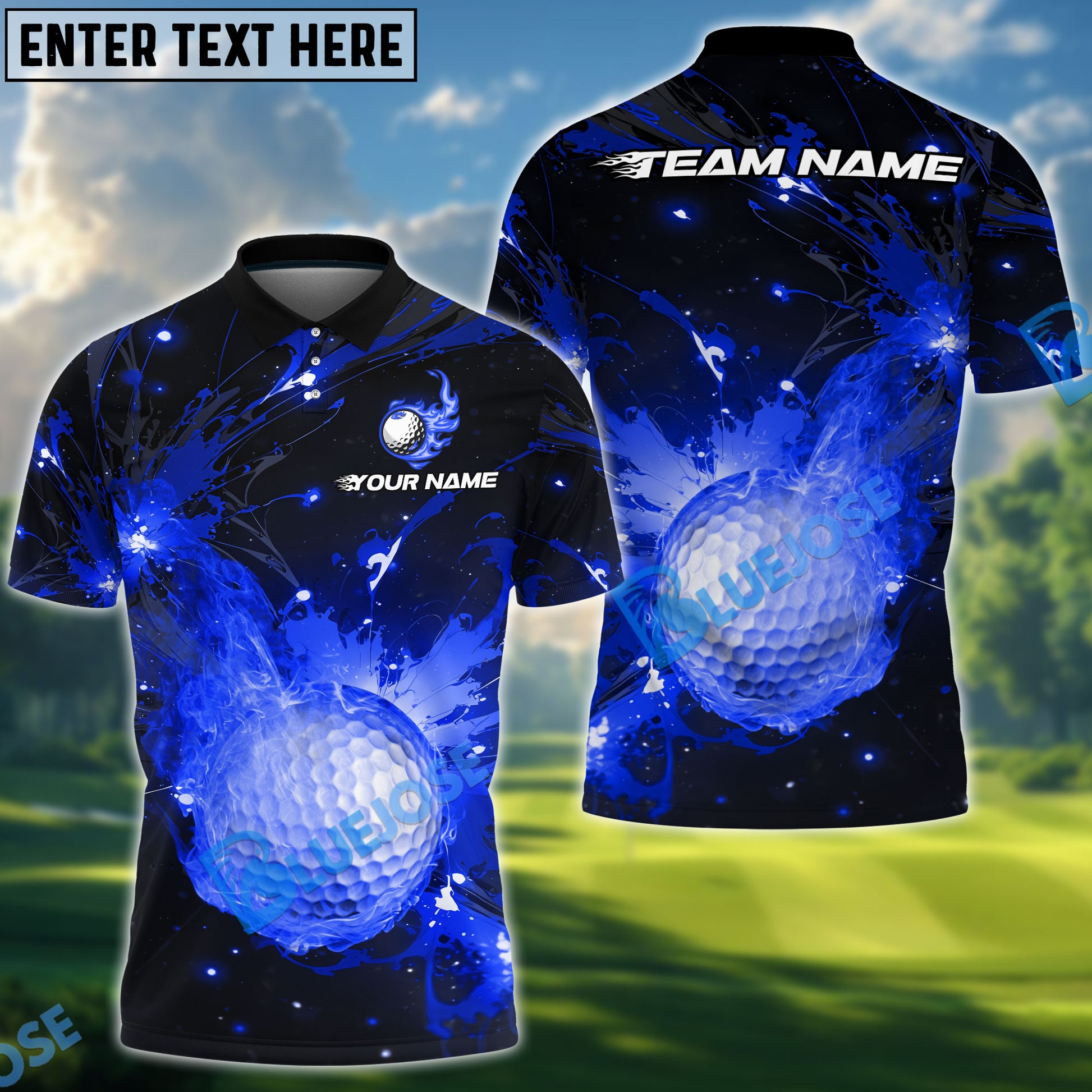 BlueJose Fireball Golf Polo Shirt, Customized Name & Team Name 3D Shirts (4 Colors)
