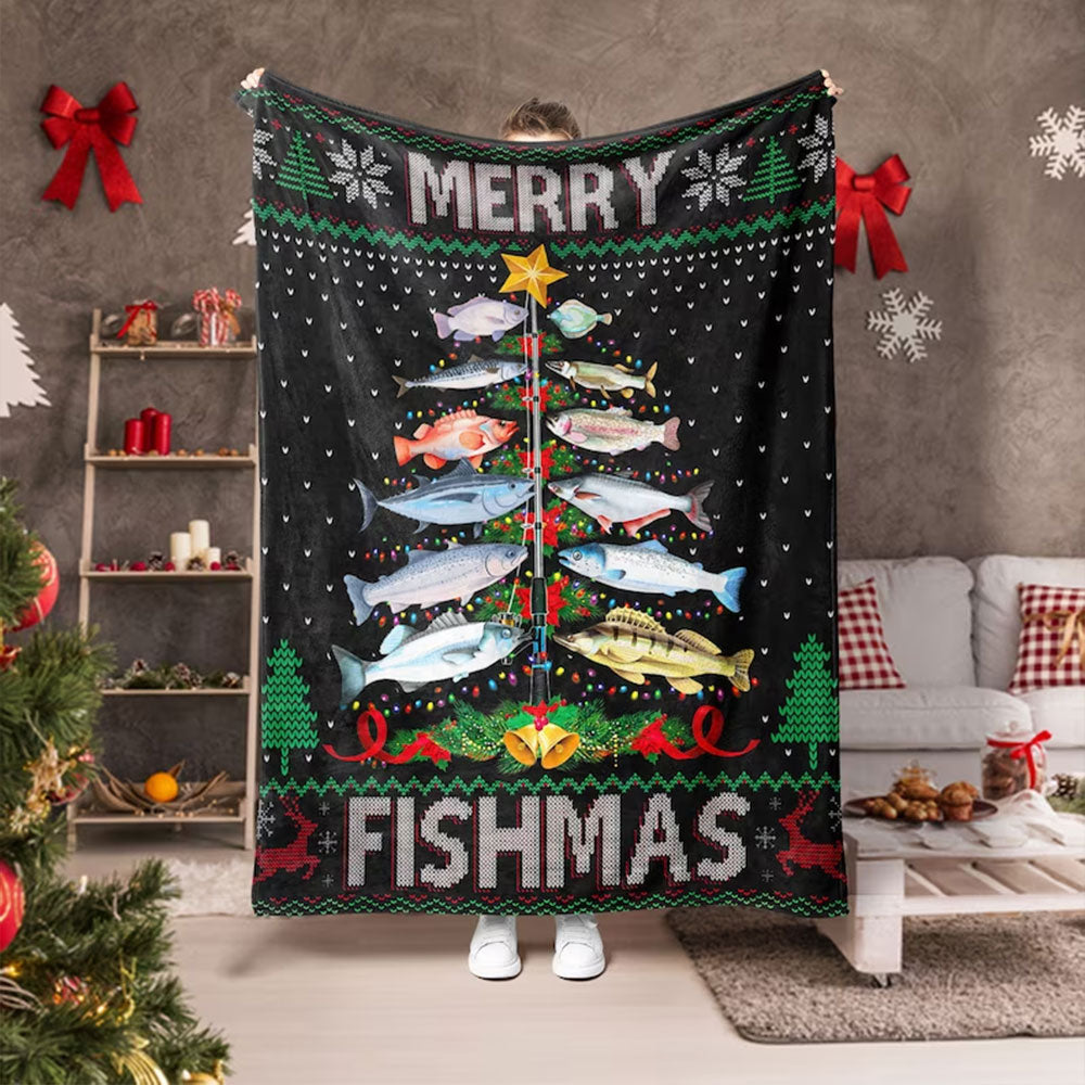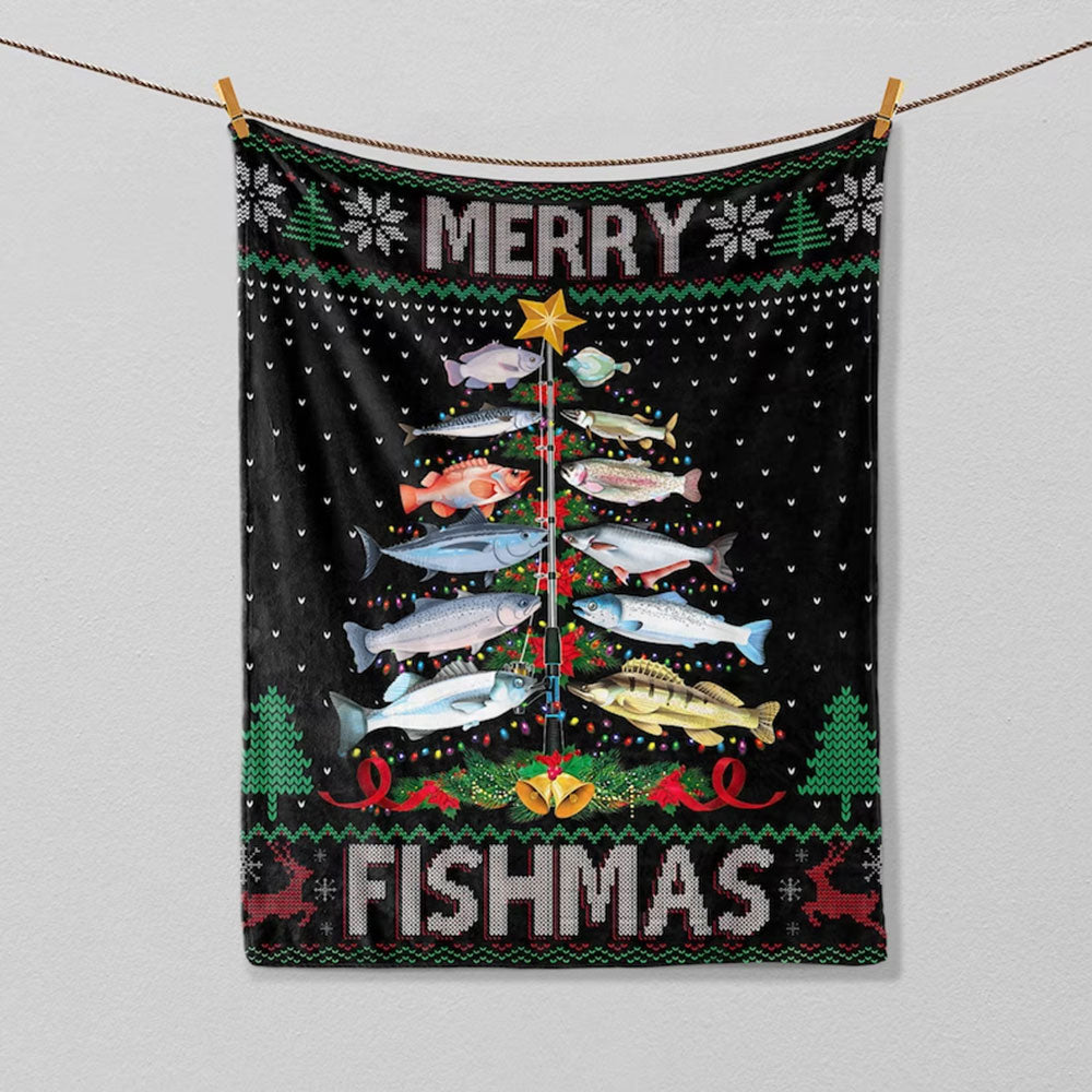 BlueJose Fishing Christmas Merry Fishmas Blanket