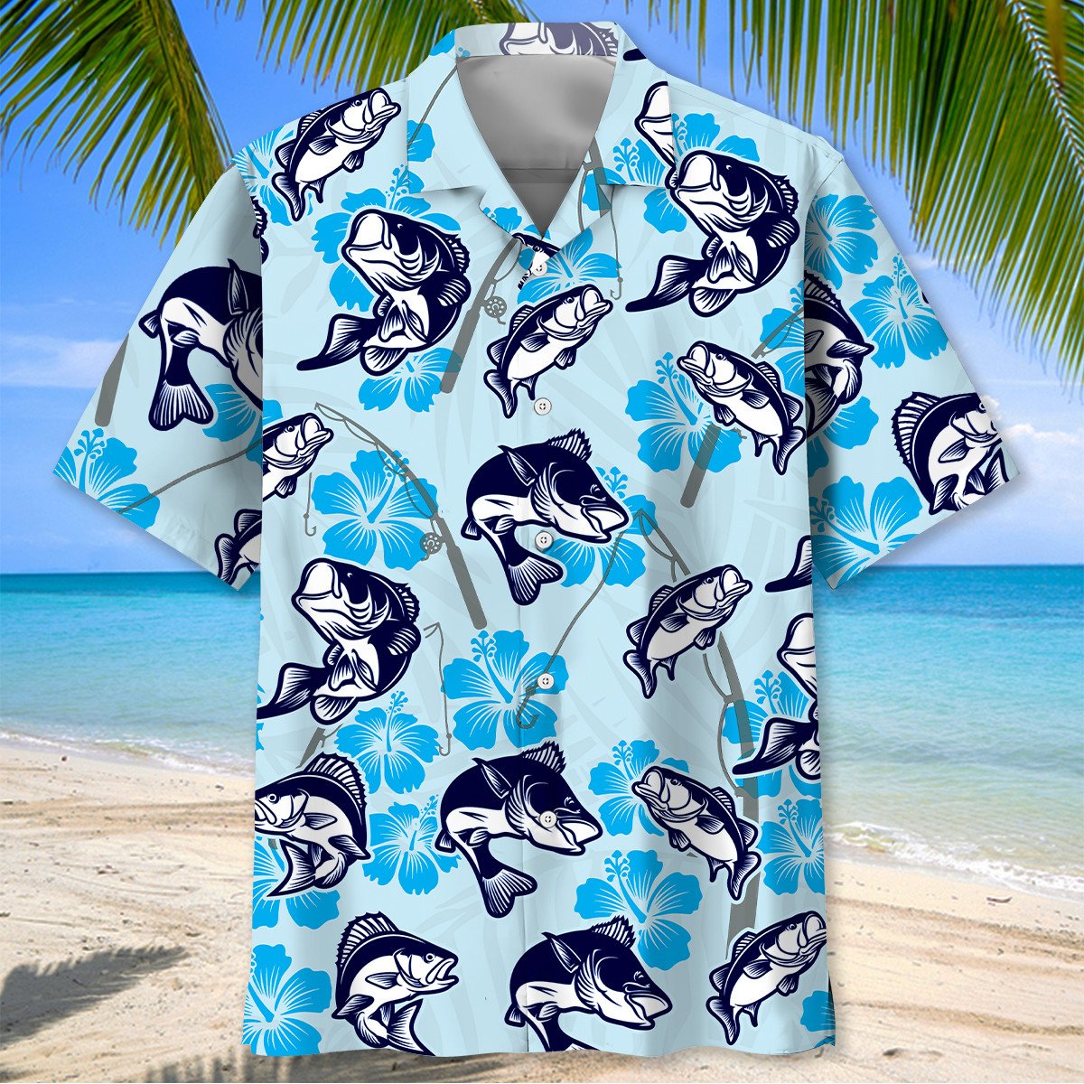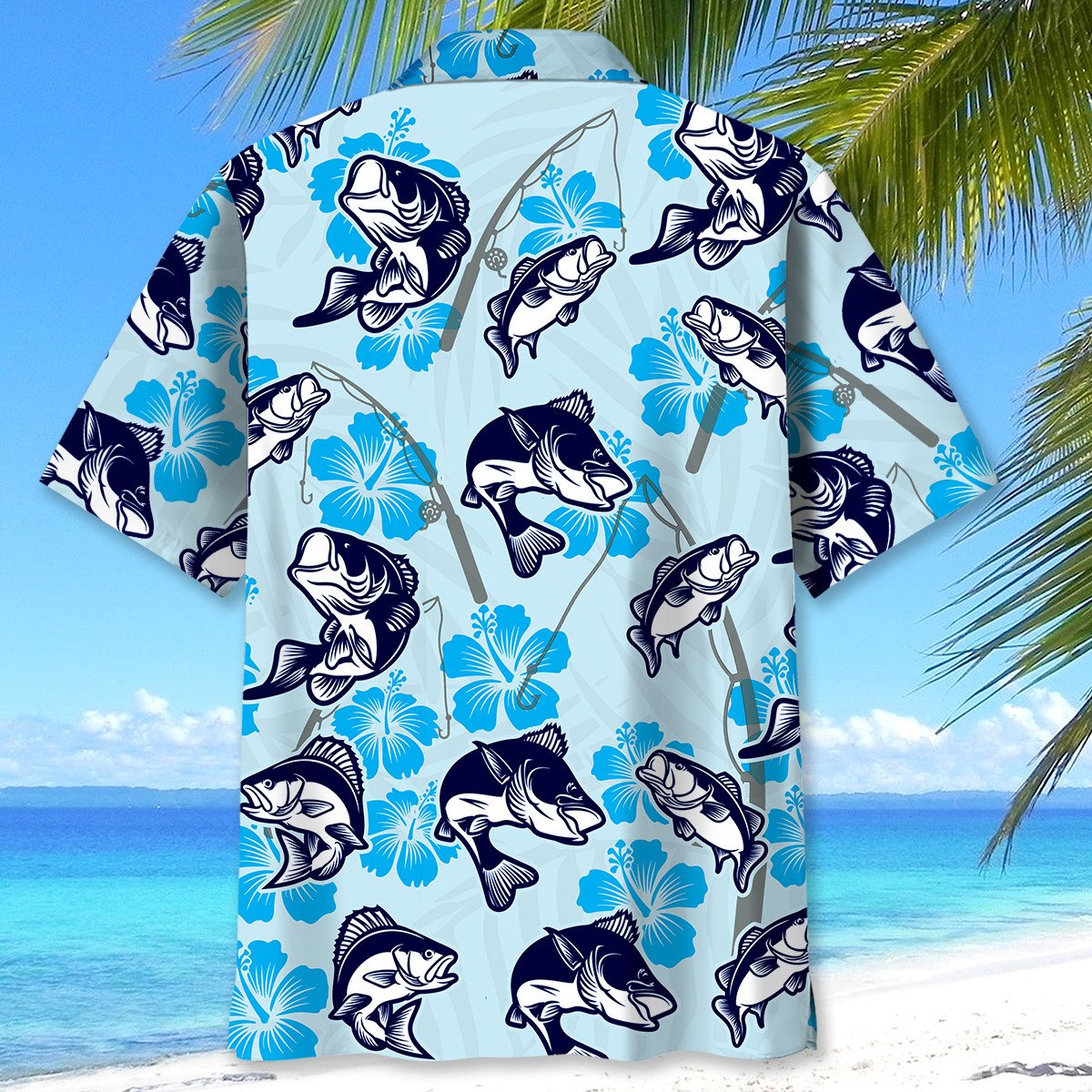 BlueJose Fishing Floral Pattern Blue Hawaiian Shirt