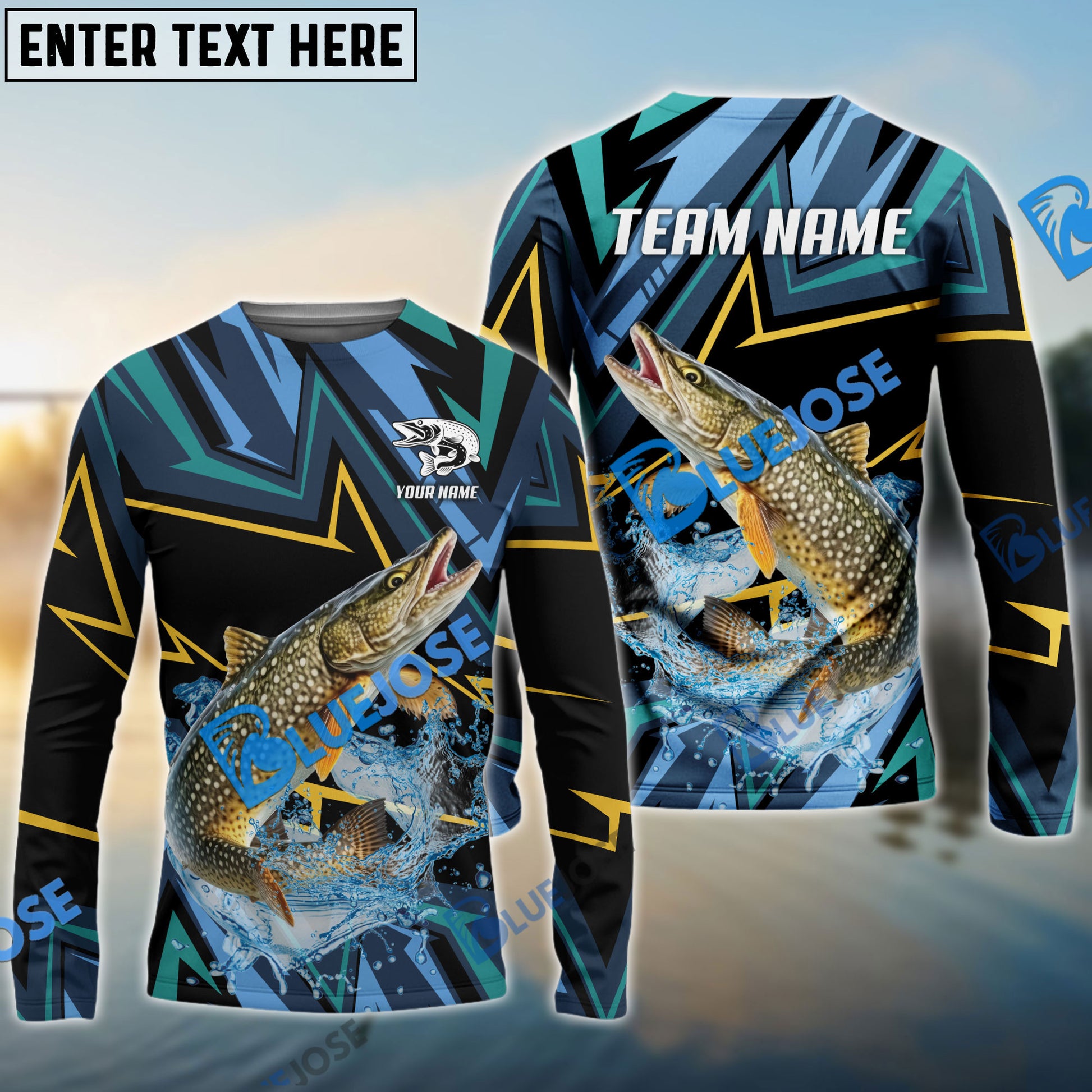 Bluejose Fishing Lightning Pattern Sport Custom Name & Team Name 3D Shirts
