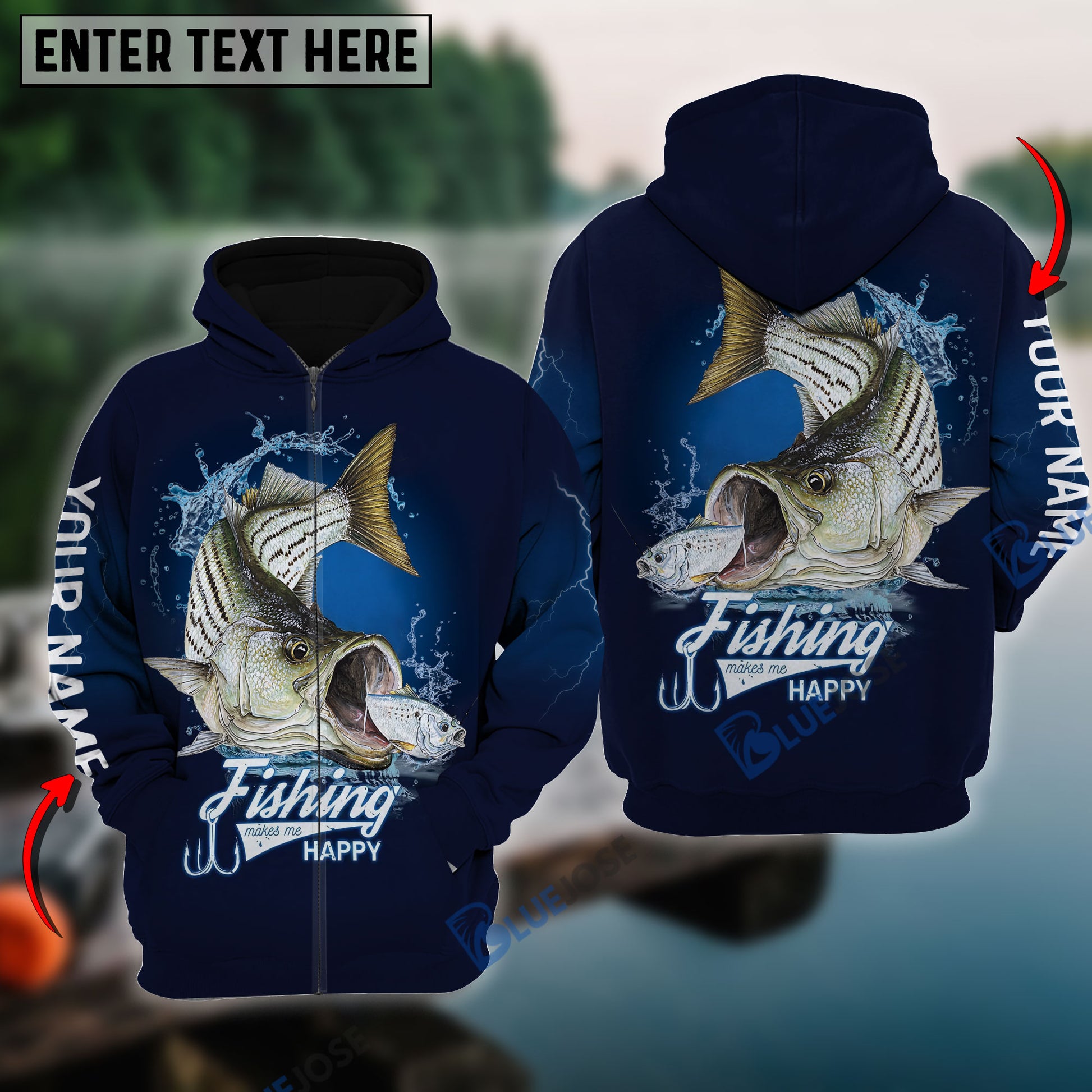 BlueJose Fishing Makes Me Happy Striped Bass Fishing 3D Hoodie
