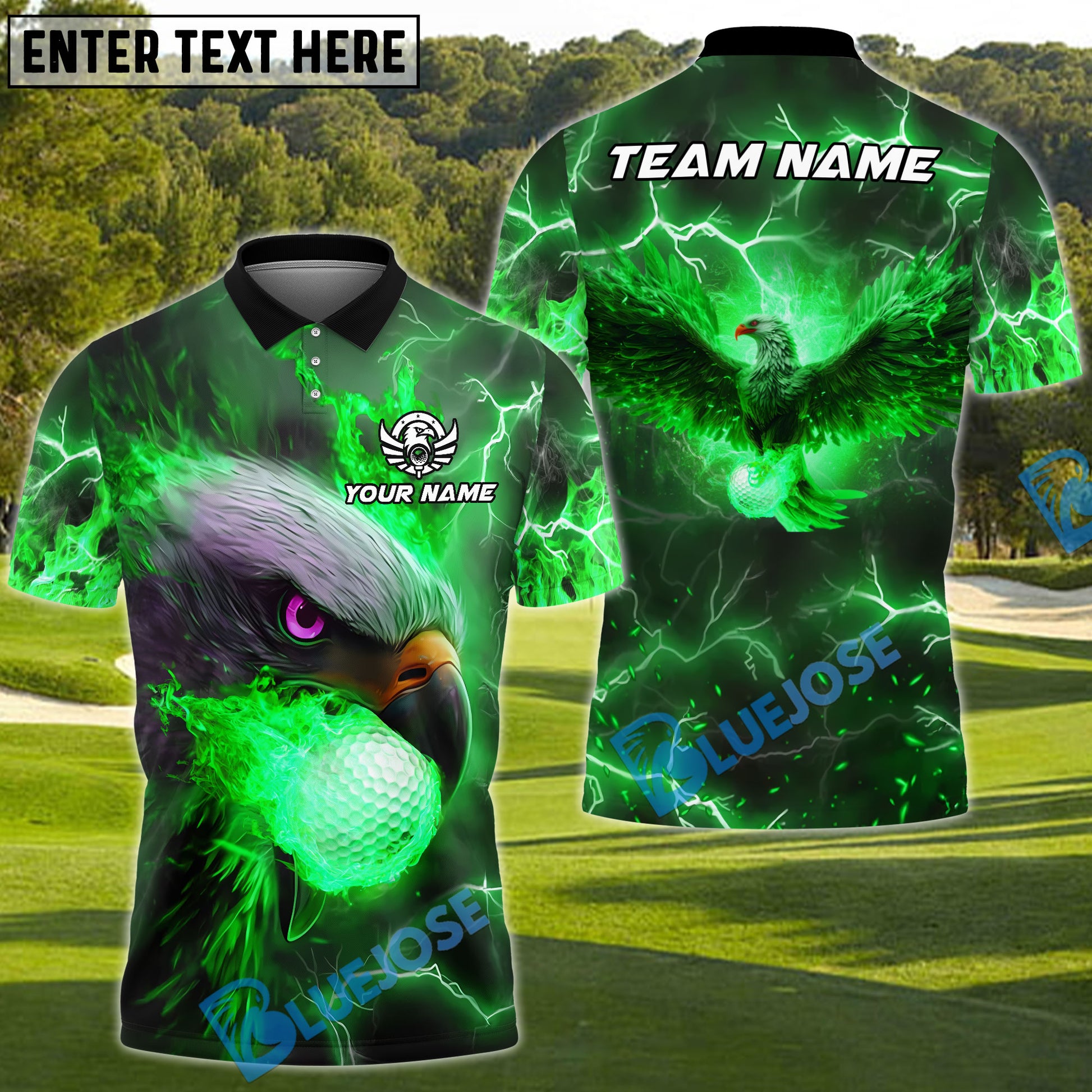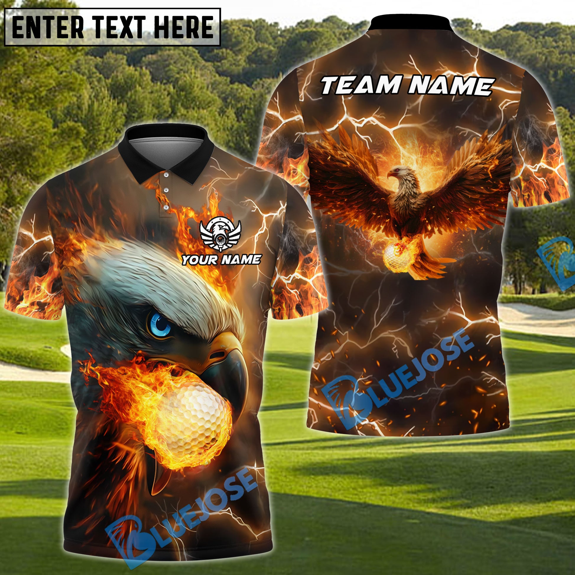 BlueJose Flaming Eagle Golf Polo Shirt, Customized Name & Team Name 3D Shirts (4 Colors)