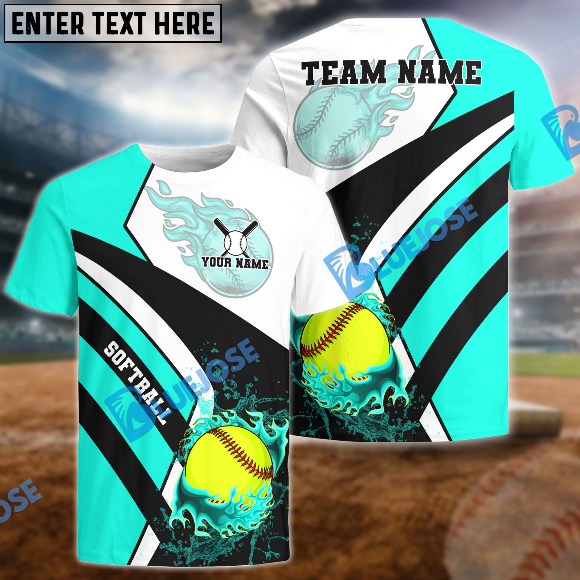 BlueJose Softball Flame Custom Name & Team 3D Shirt (4 Colors)