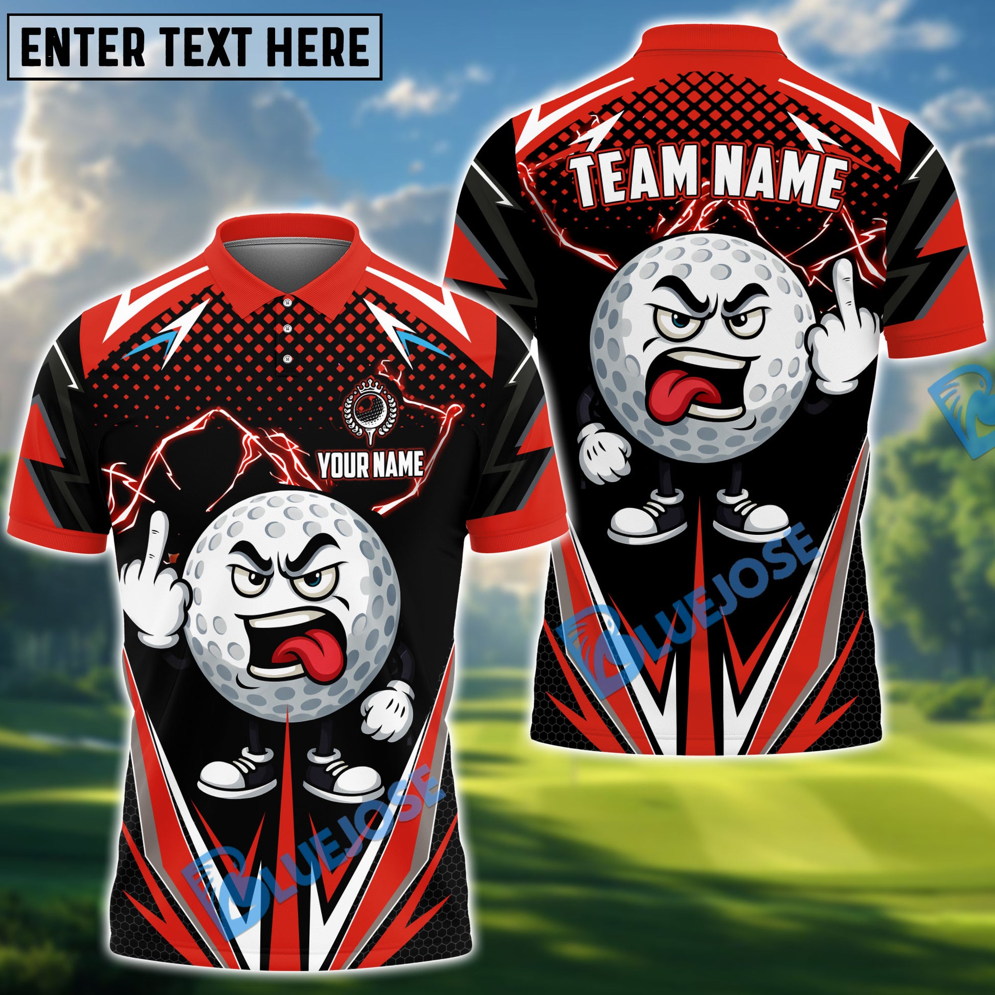 BlueJose Funny Angry Golf Ball Polo Shirt, Customized Name & Team Name 3D Shirts (4 Colors)