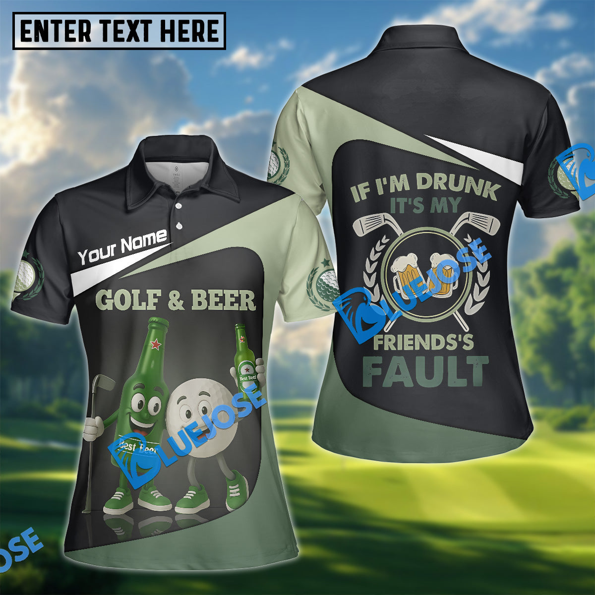 BlueJose Funny Beer And Golf Polo Shirt, Custom Name & Team Name 3D Shirts