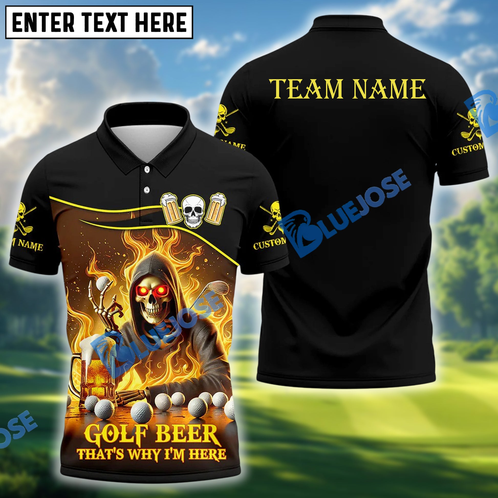 BlueJose Funny Skull Golf Beer Polo Shirt Custom Name & Team Name 3D Shirts