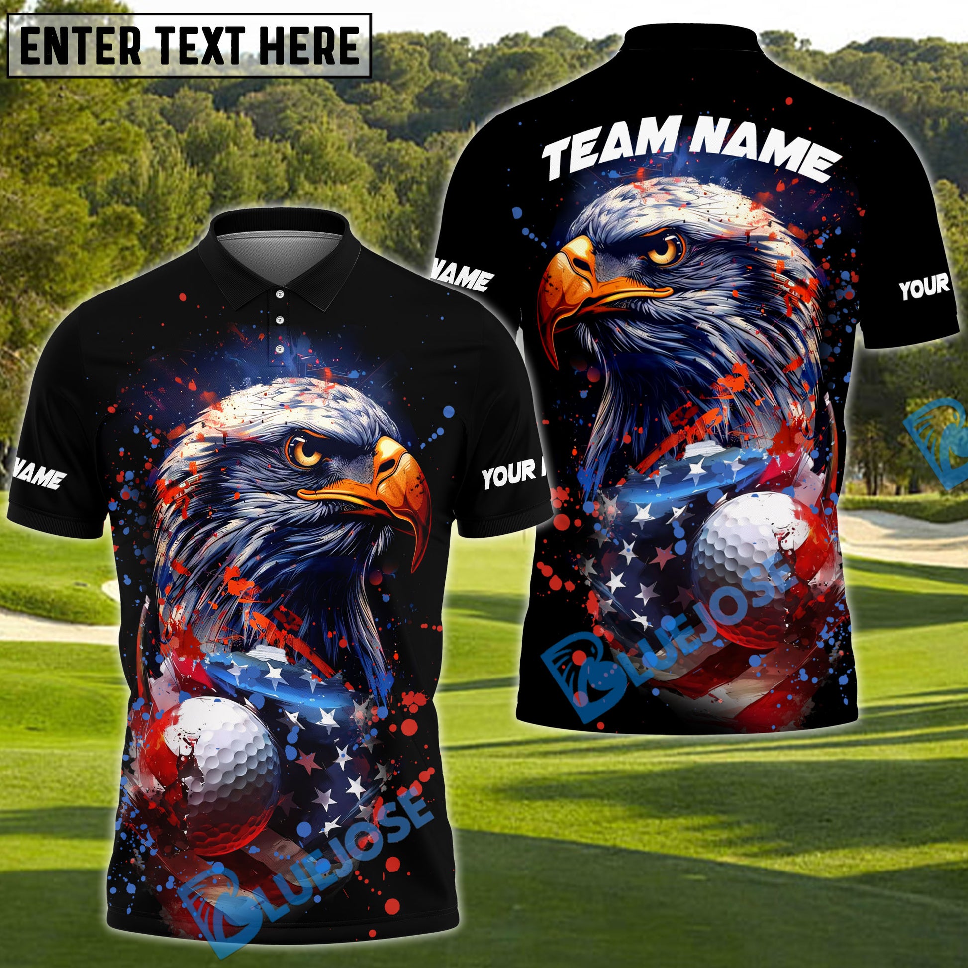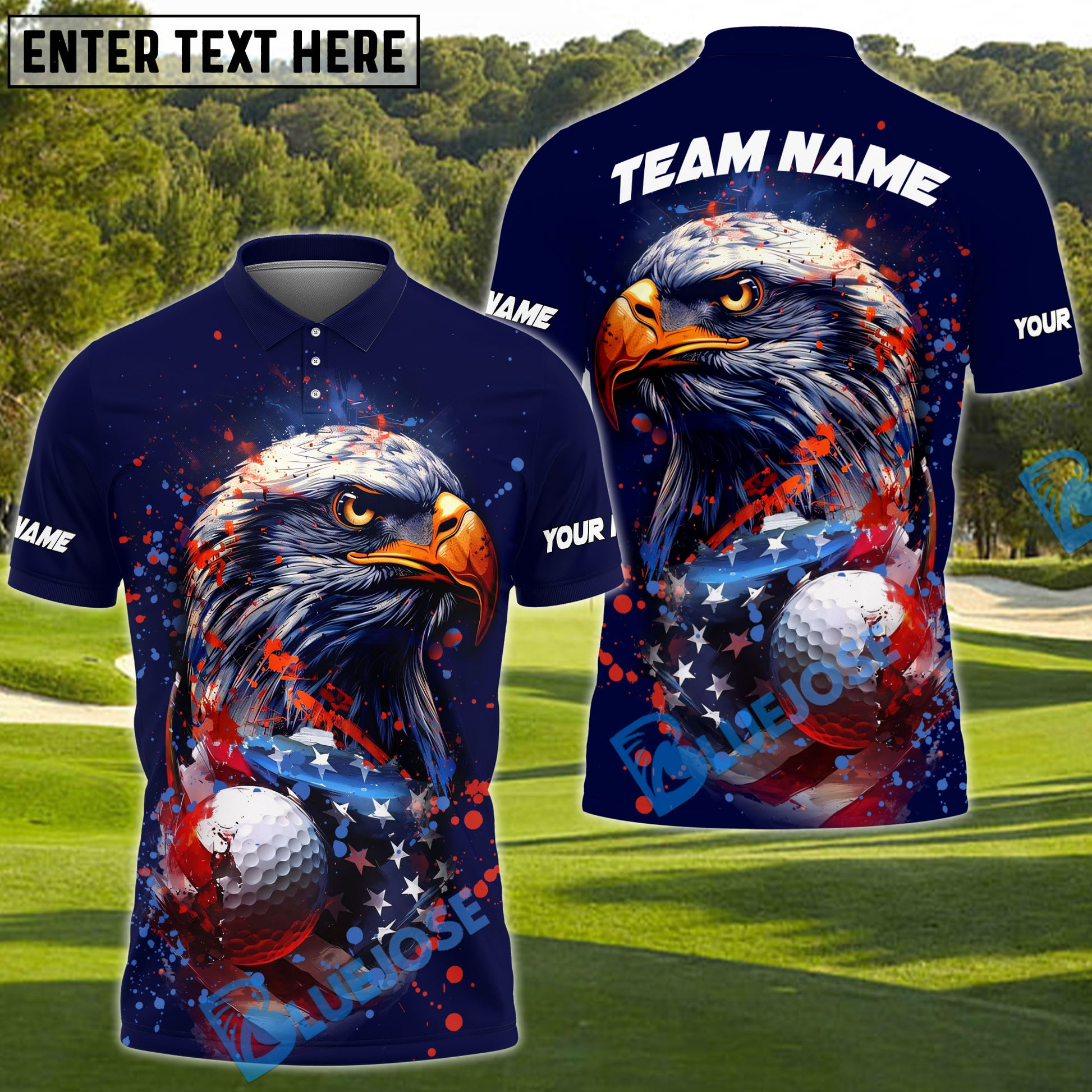 BlueJose Golf American Eagle Flag Paint Pattern Customized Name, Team Name 3D Shirts (4 Colors)