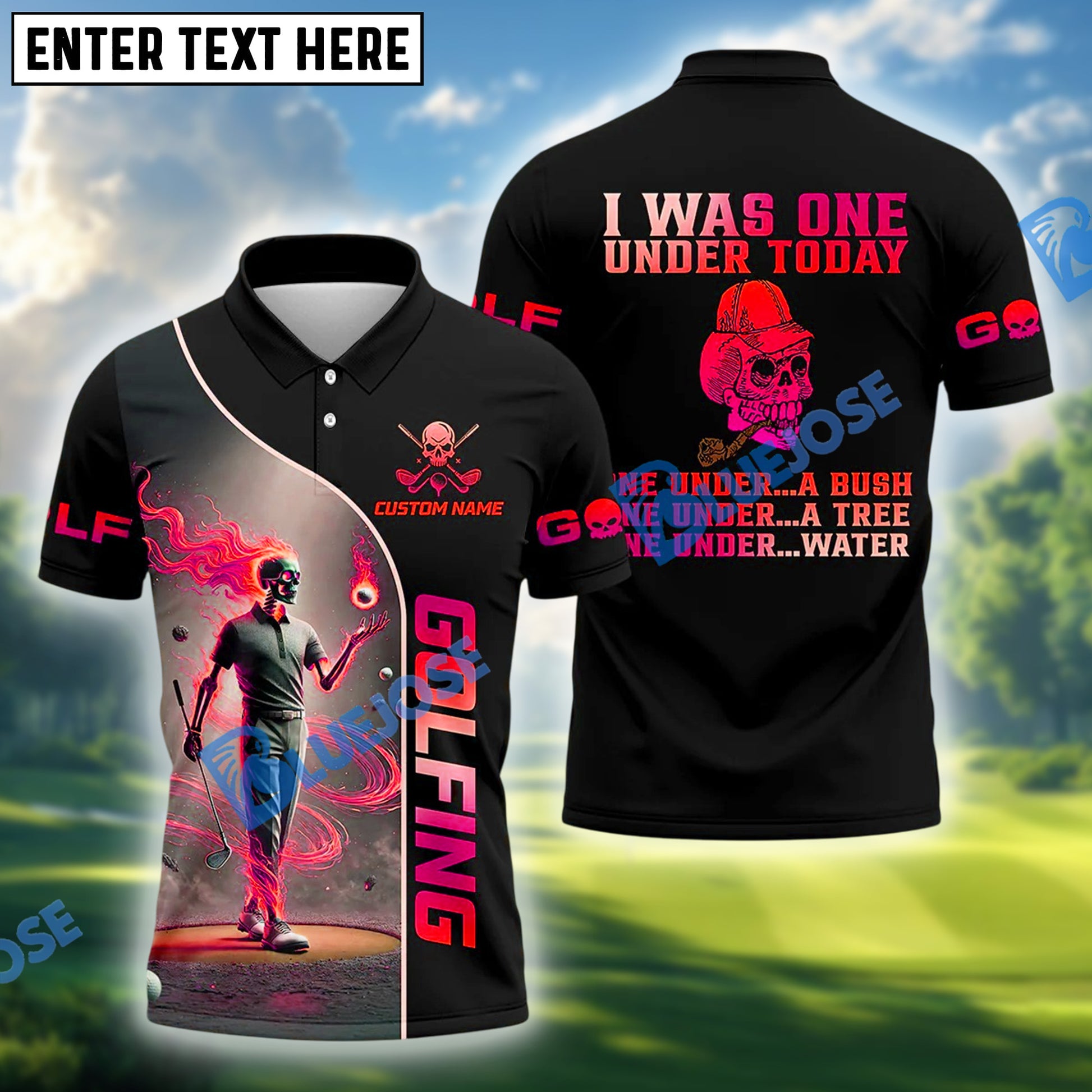 BlueJose I Was One Under Today Funny Skull Golf Shirt Customized Name, Team Name 3D Shirts (4 Colors)