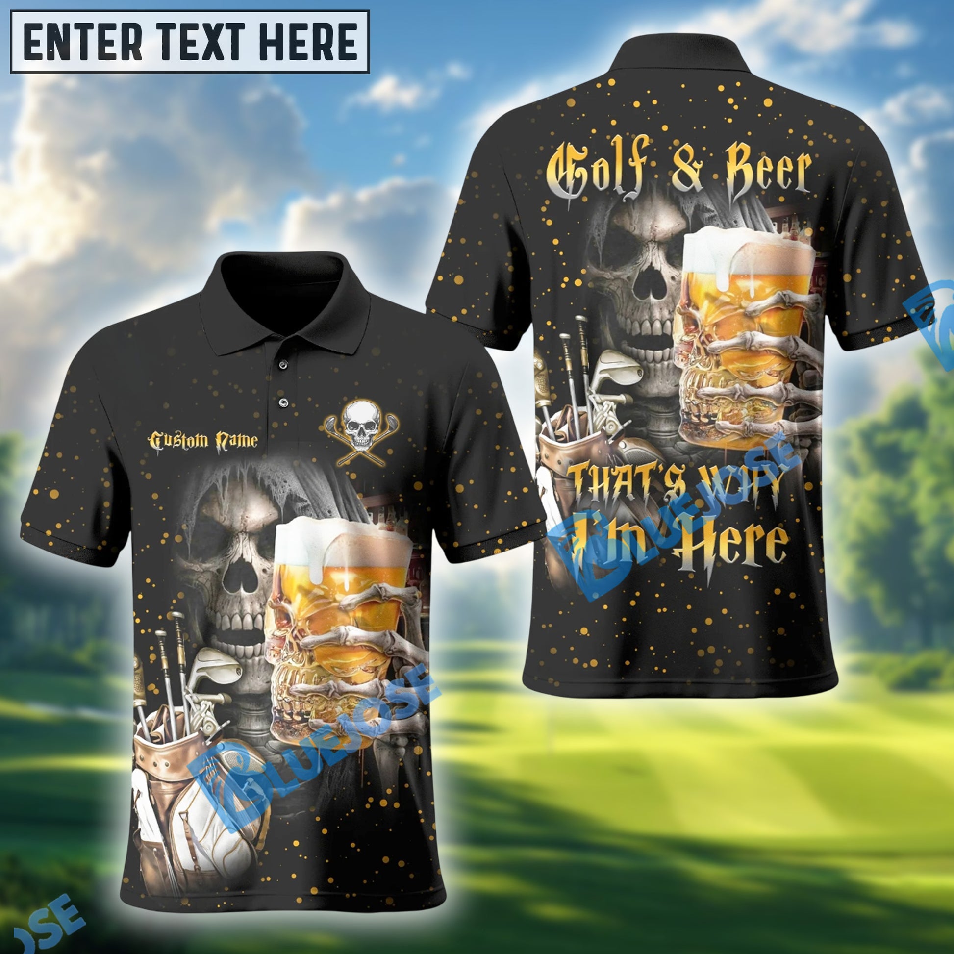 BlueJose Golf And Beer Skull Golf Polo Shirt, Custom Name & Team Name 3D Shirts