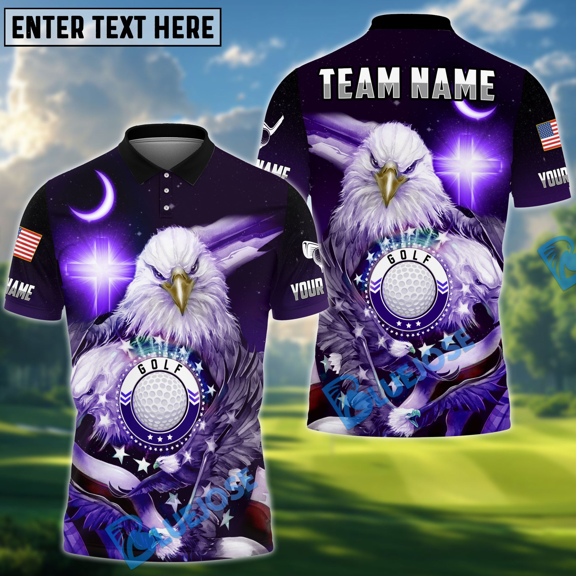 BlueJose Golf Ball Cross Eagle American Flag Customized Name, Team Name 3D Shirts (4 Colors)