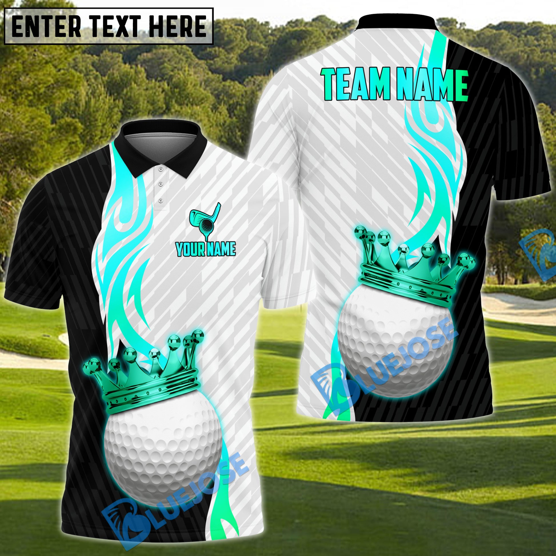 BlueJose Golf Ball Crown King Gradient Line Premium Multicolor Golf Polo Shirt, Customized Name & Team Name 3D Shirts (4 Colors)