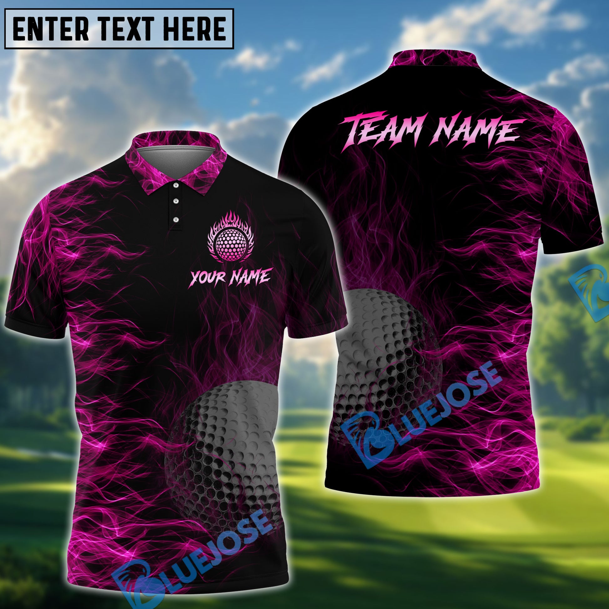 BlueJose Golf Ball Fire Customized Name, Team Name 3D Shirts (4 Colors)