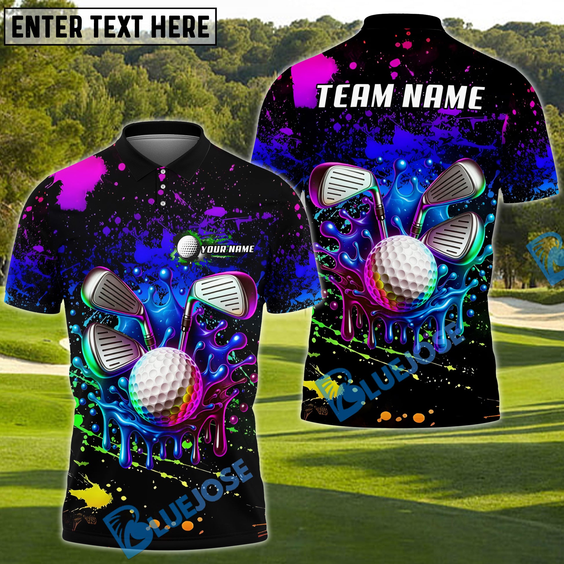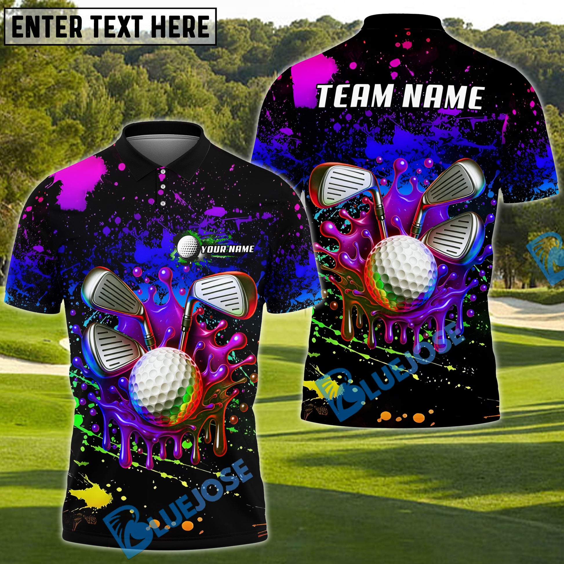 BlueJose Golf Ball Paint Splash Drip Customized Name, Team Name 3D Shirts (4 Colors)