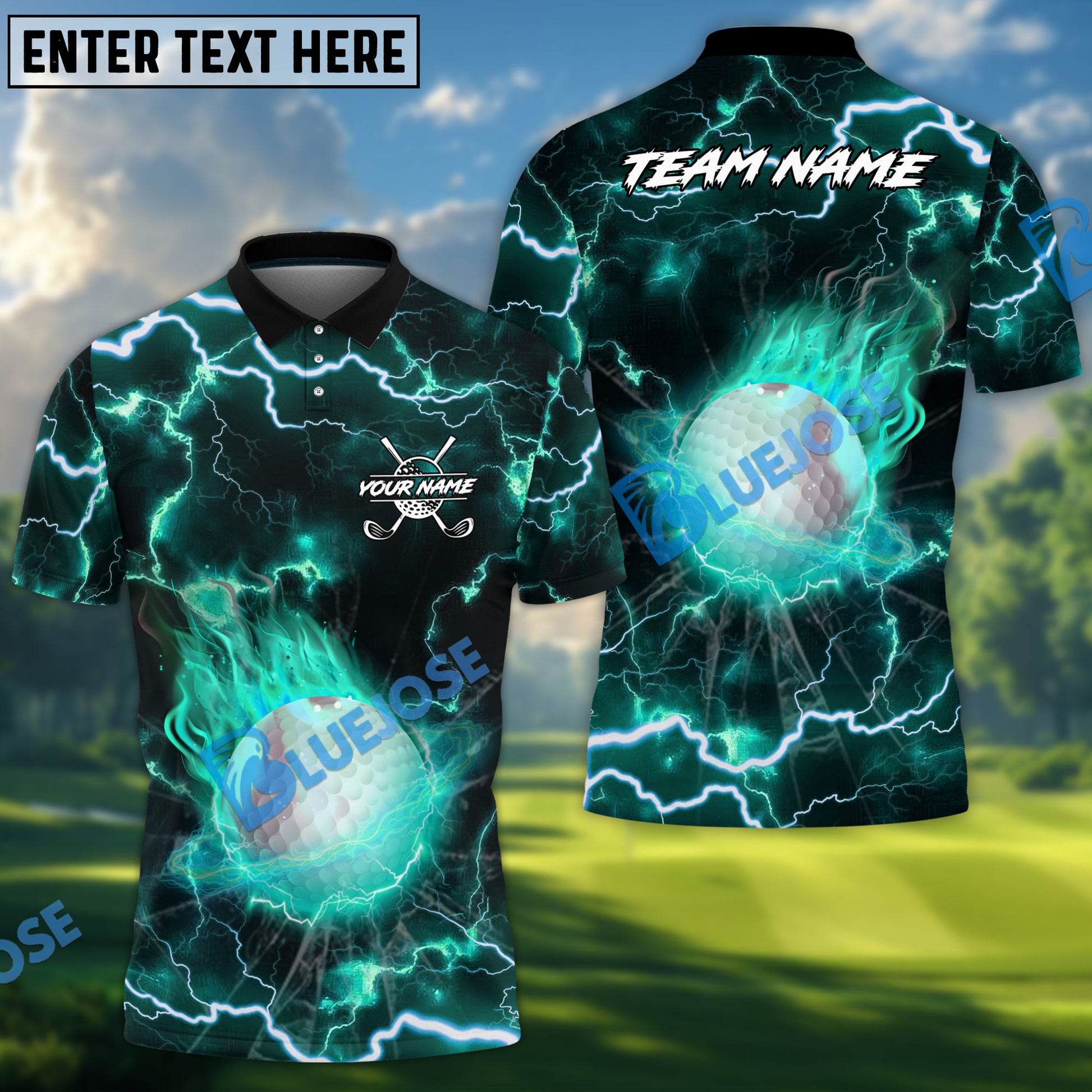 BlueJose Golf Ball Thunder Pattern Customized Name, Team Name 3D Shirts (4 Colors)