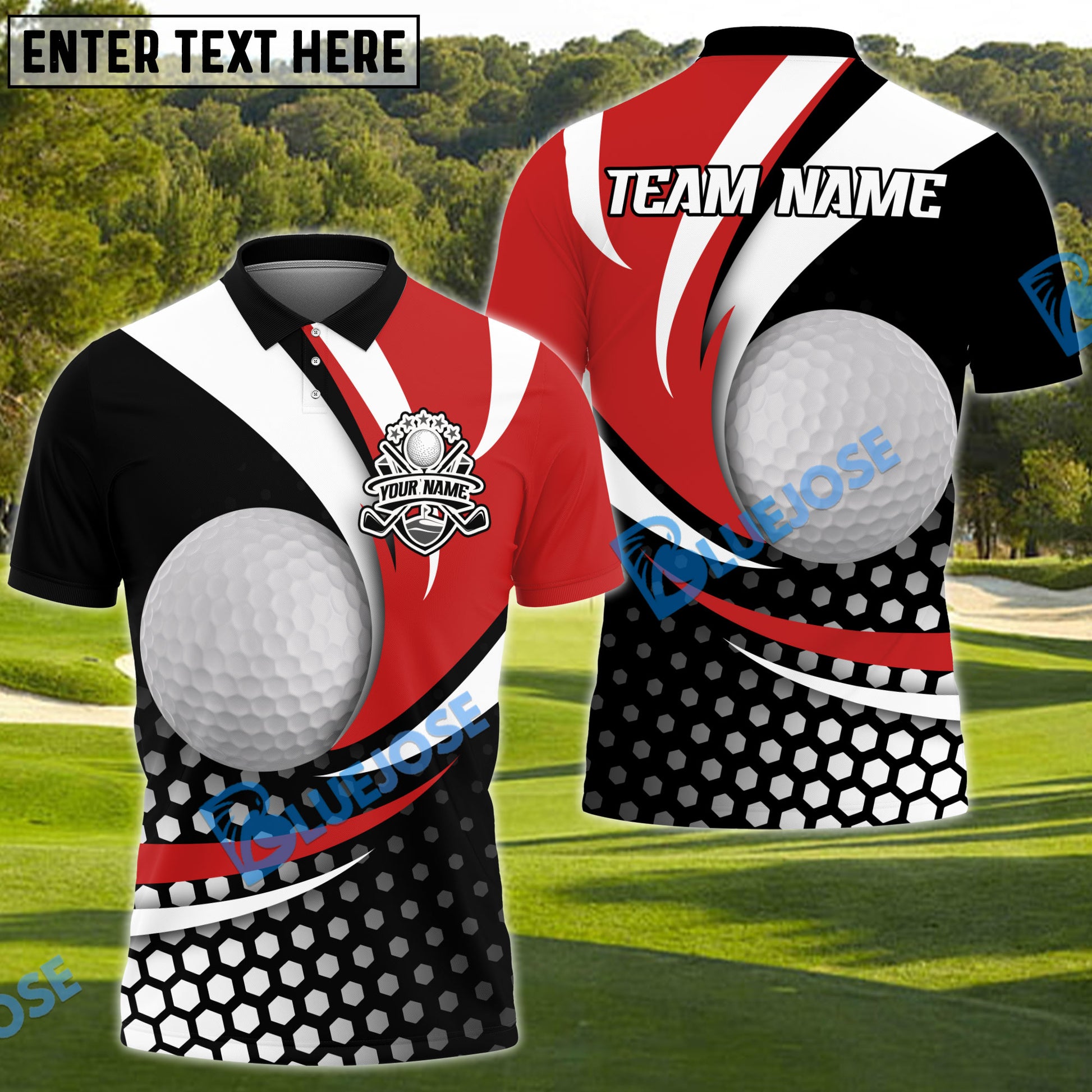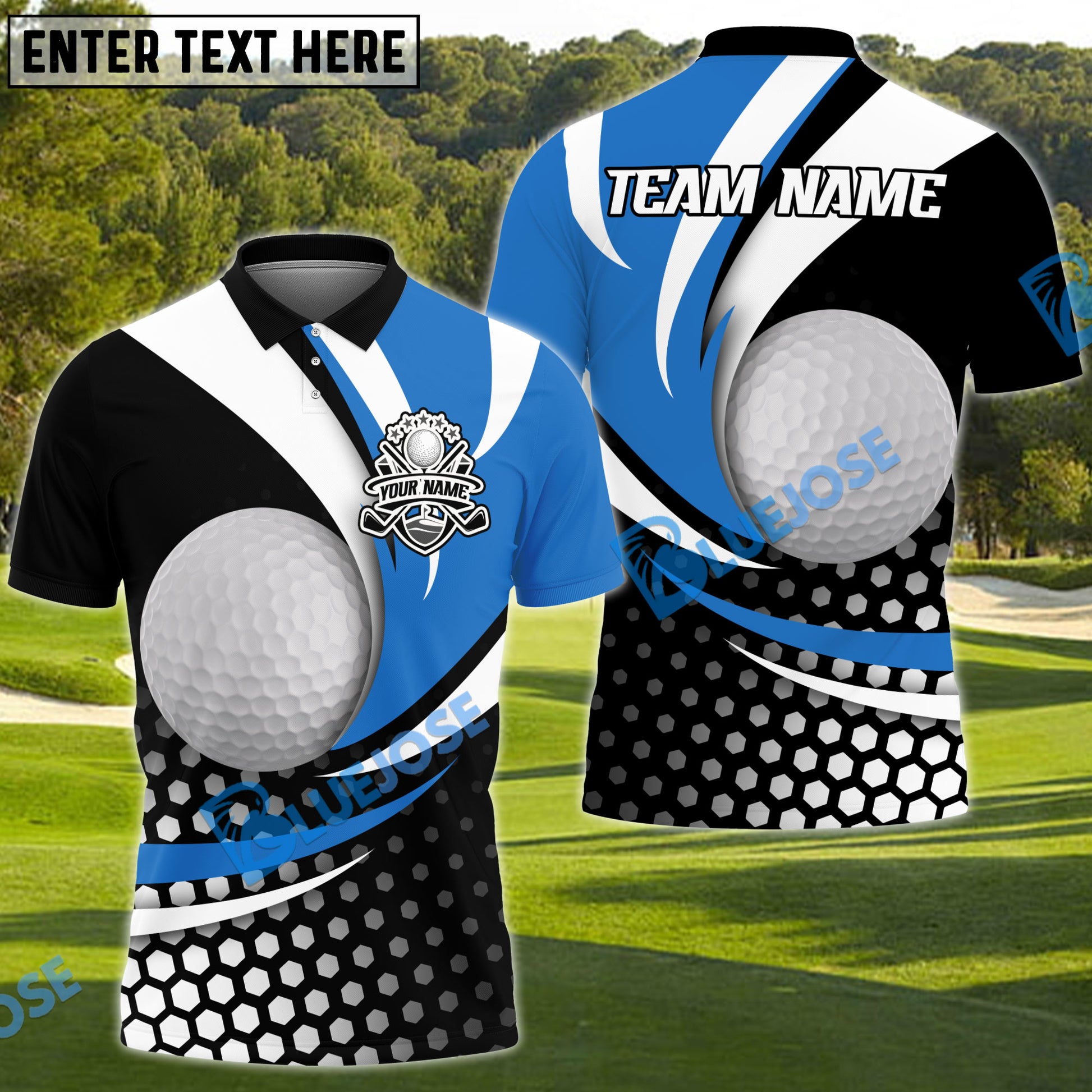 BlueJose Golf Curved Dot Pattern Customized Name, Team Name 3D Shirts (4 Colors)
