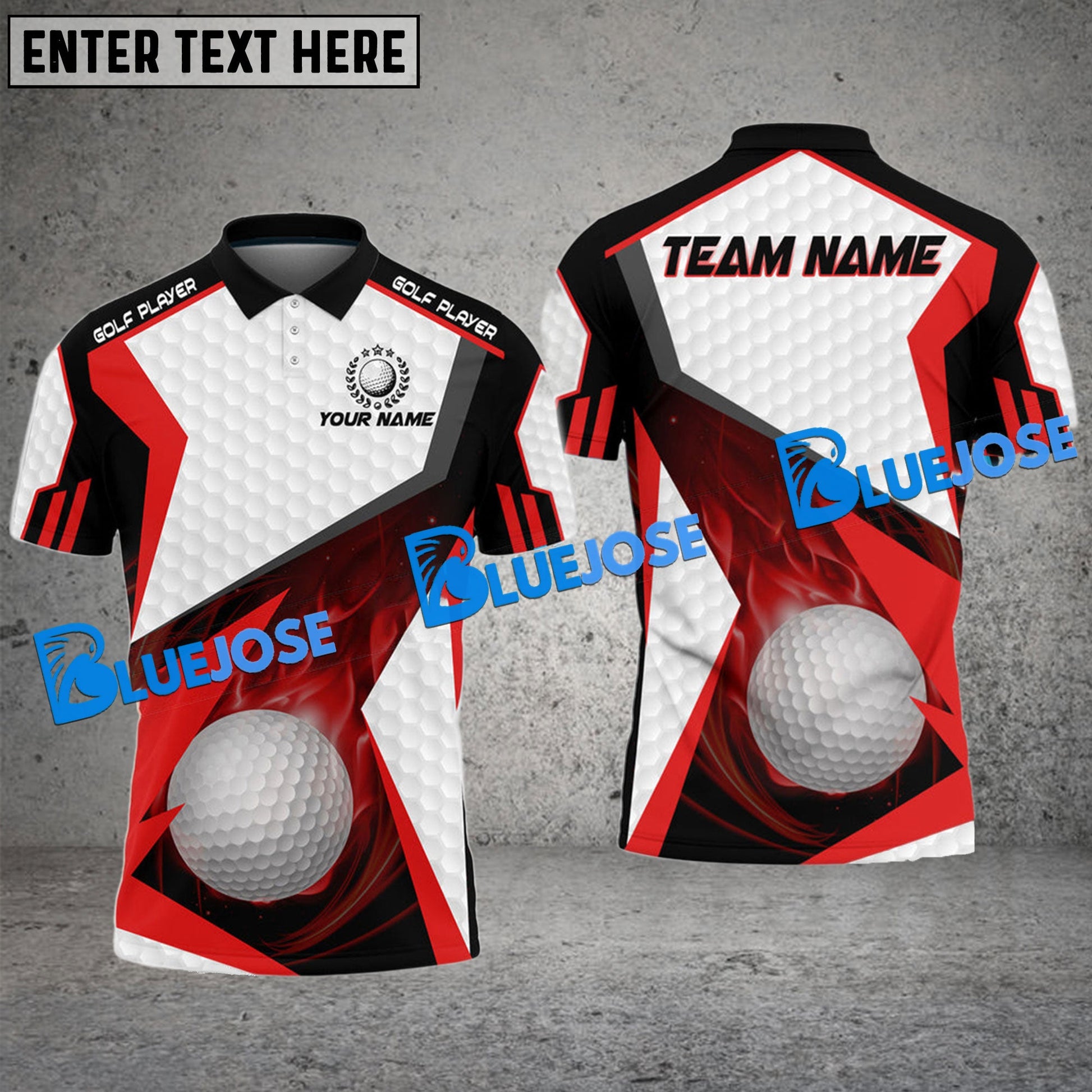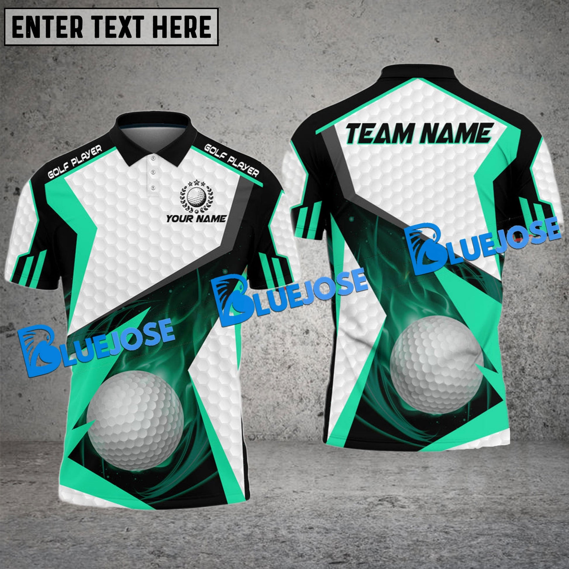 BlueJose Golf Fire Ball Skin Pattern Customized Name, Team Name 3D Shirts (4 Colors)