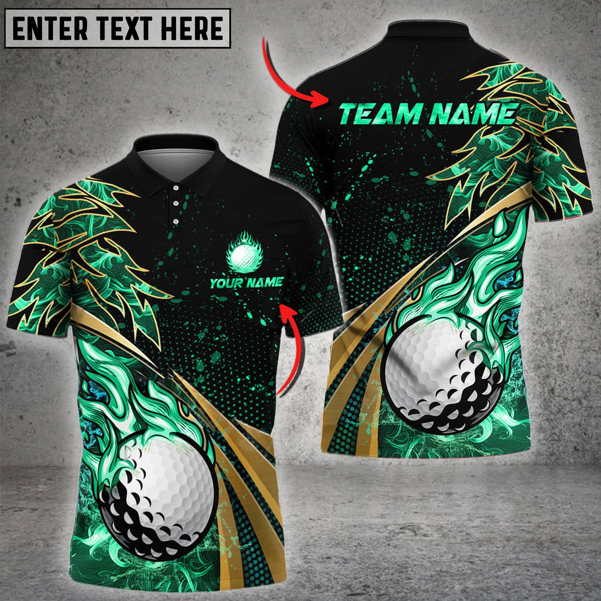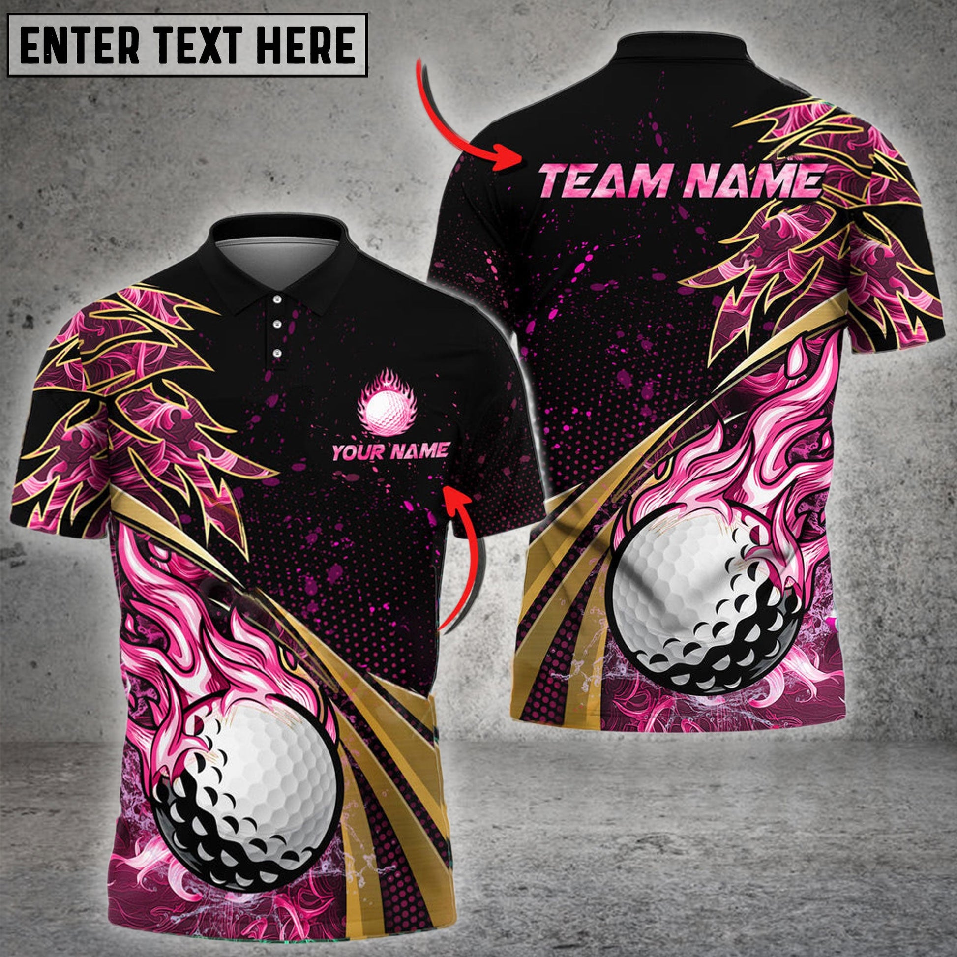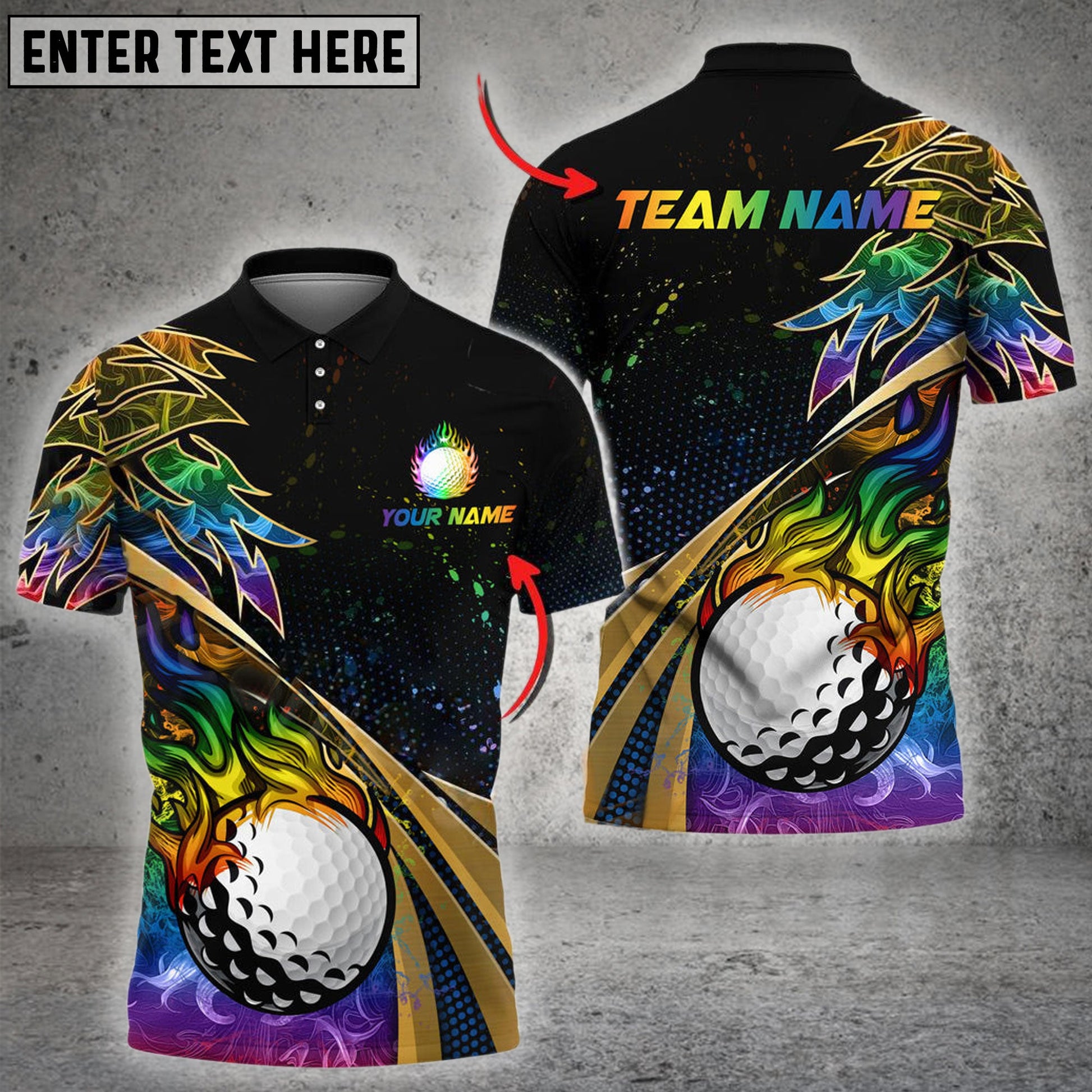 BlueJose Golf Fire Golden Line Premium Multicolor Option Customized Name, Team Name 3D Polo Shirt (6 Colors)