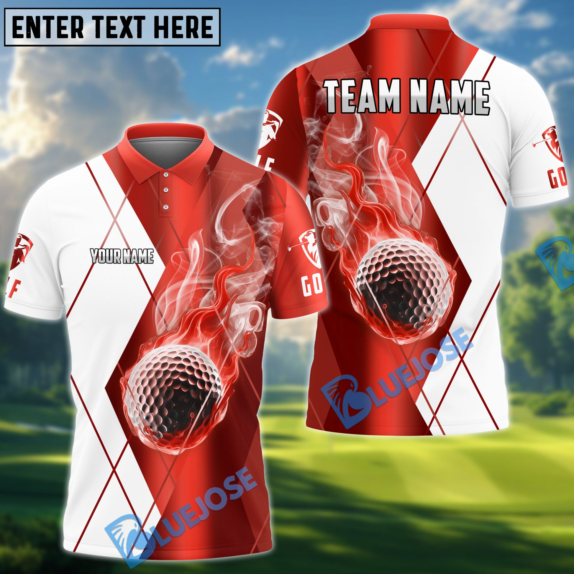 BlueJose Golf Fire Smoke Bling Customized Name, Team Name 3D Shirts (6 Colors)