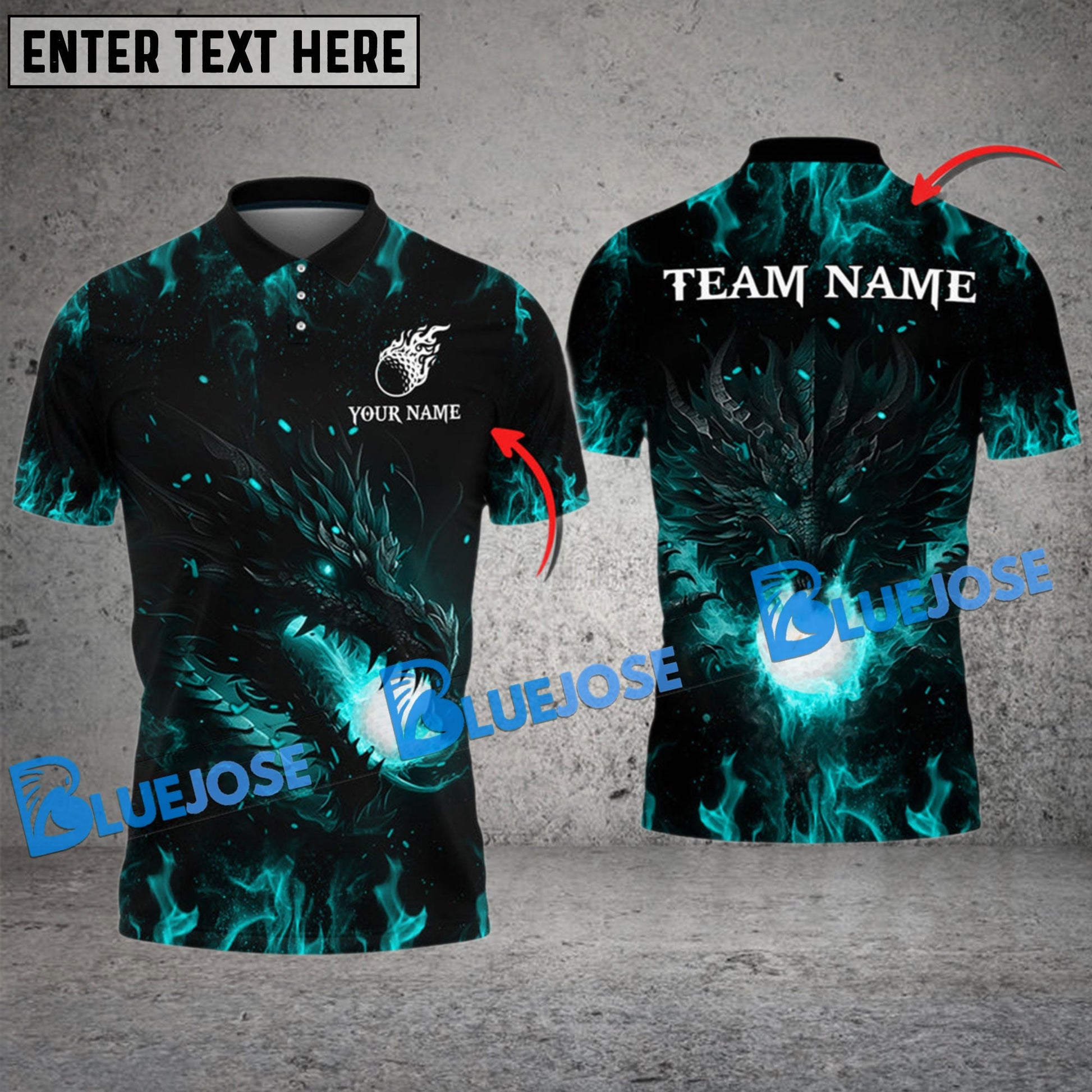 BlueJose Golf Flame Dragon Customized Name, Team Name 3D Shirts (4 Colors)