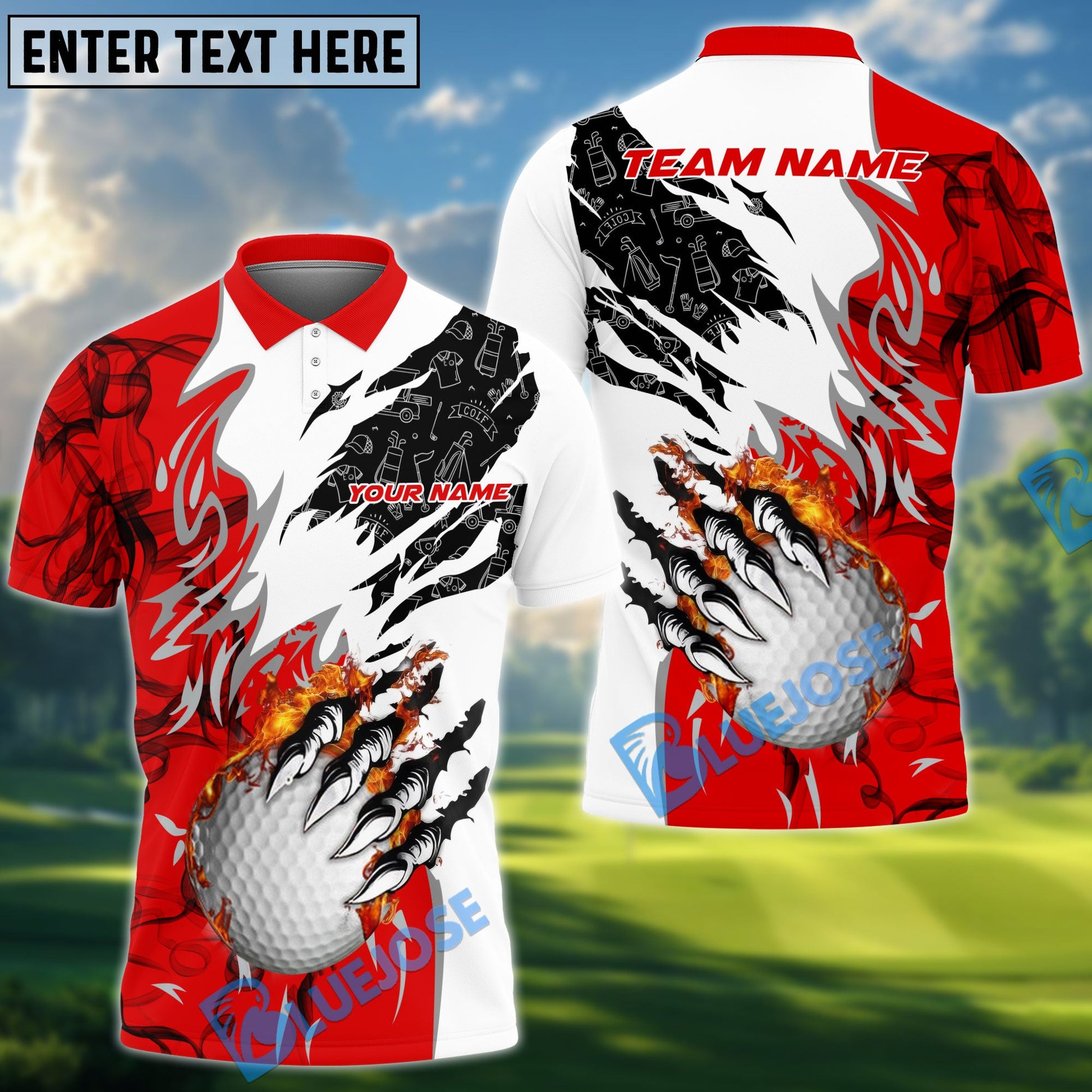 BlueJose Golf Flame Monster Hand Customized Name, Team Name 3D Shirts (4 Colors)