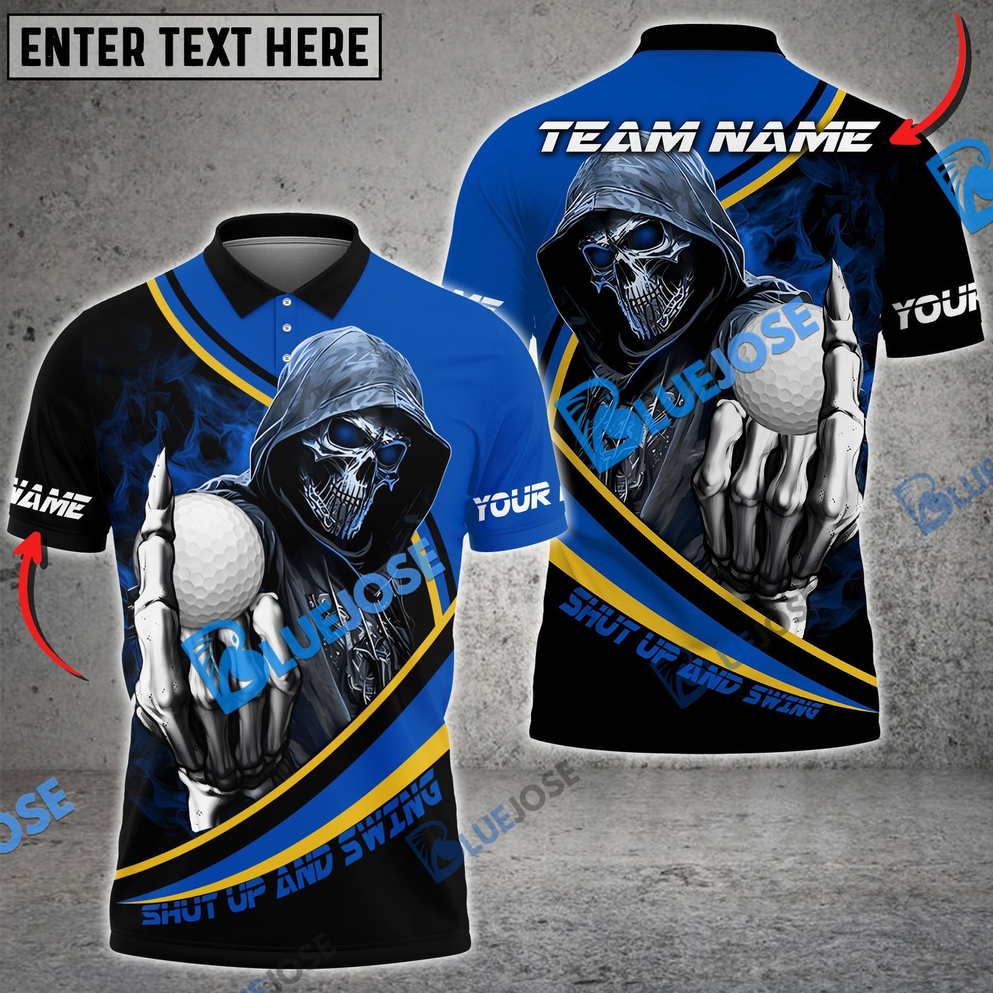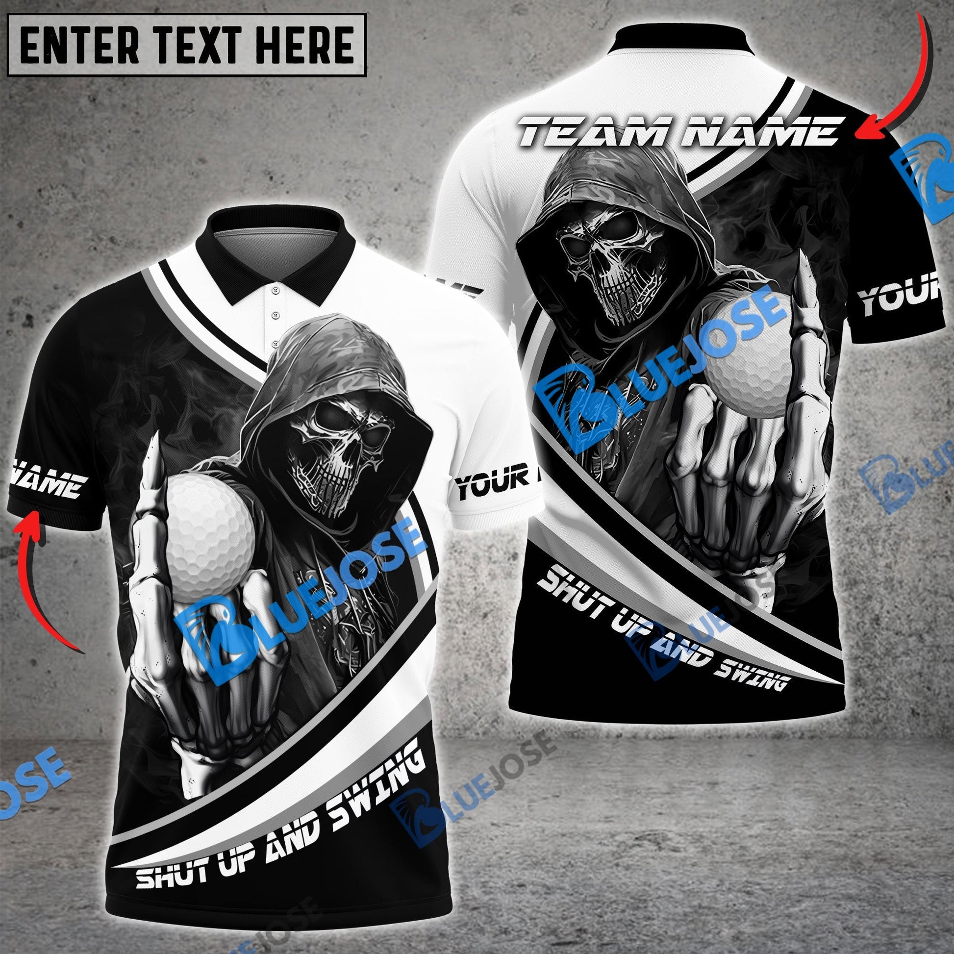 BlueJose Golf Hooded Skull Gang Customized Name, Team Name 3D Shirts (4 Colors)
