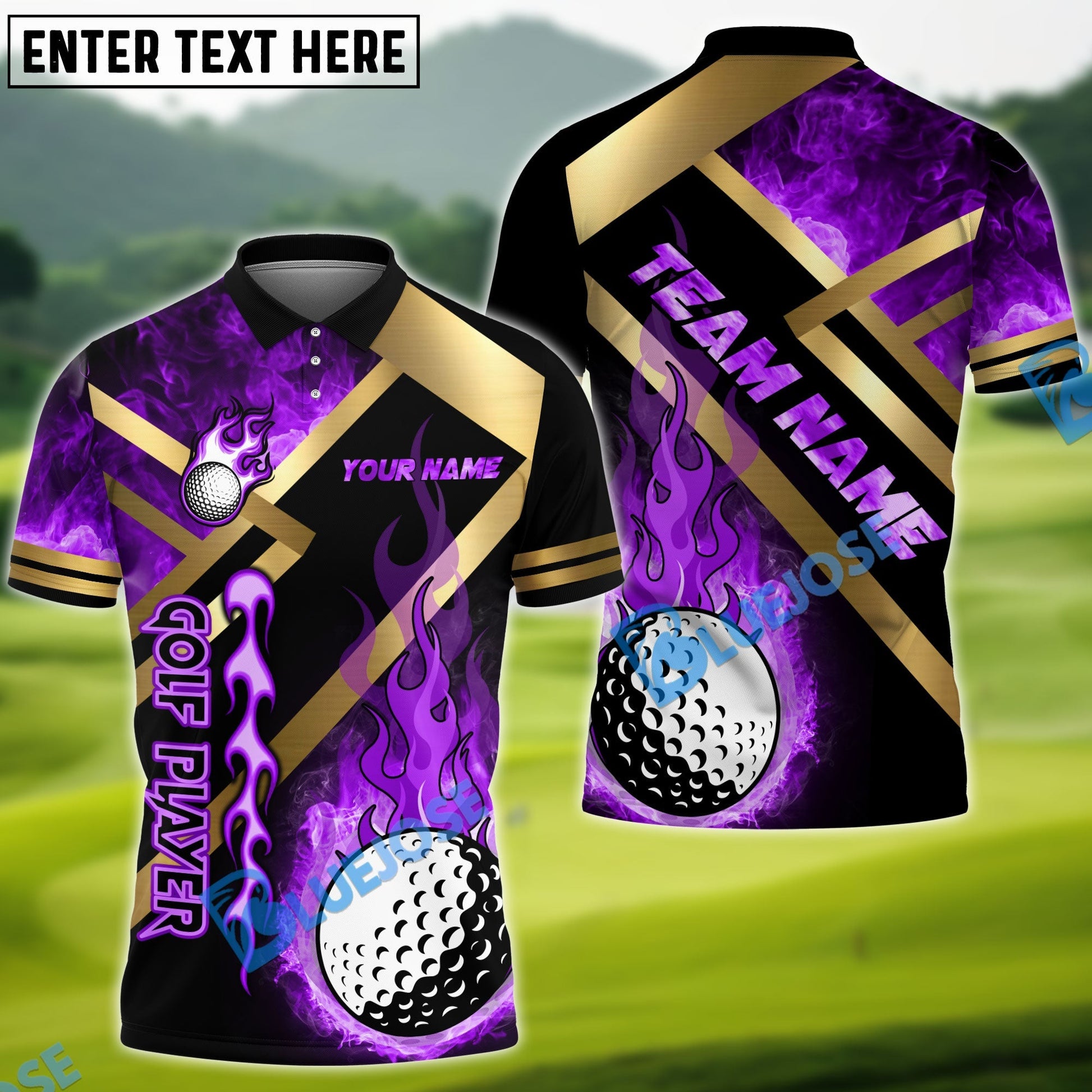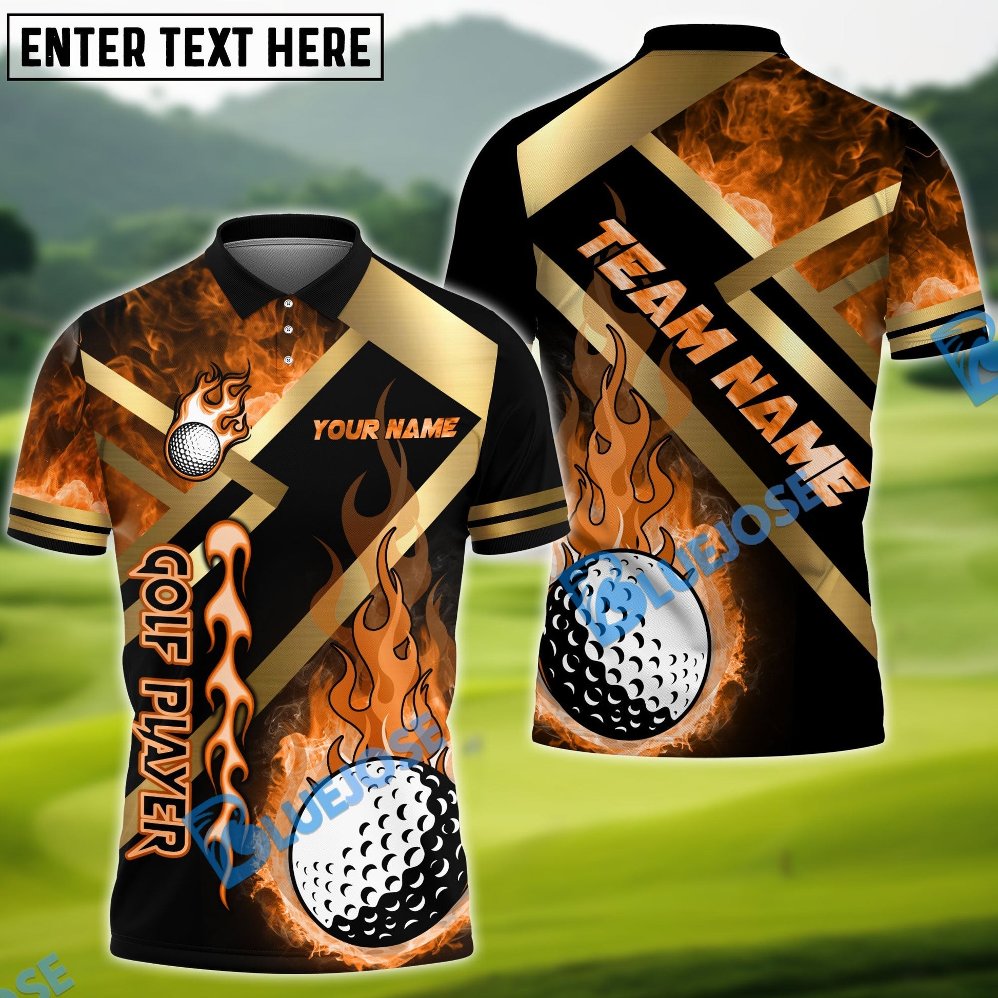 BlueJose Golf Metal and Fire Customized Name, Team Name 3D Shirts (4 Colors)