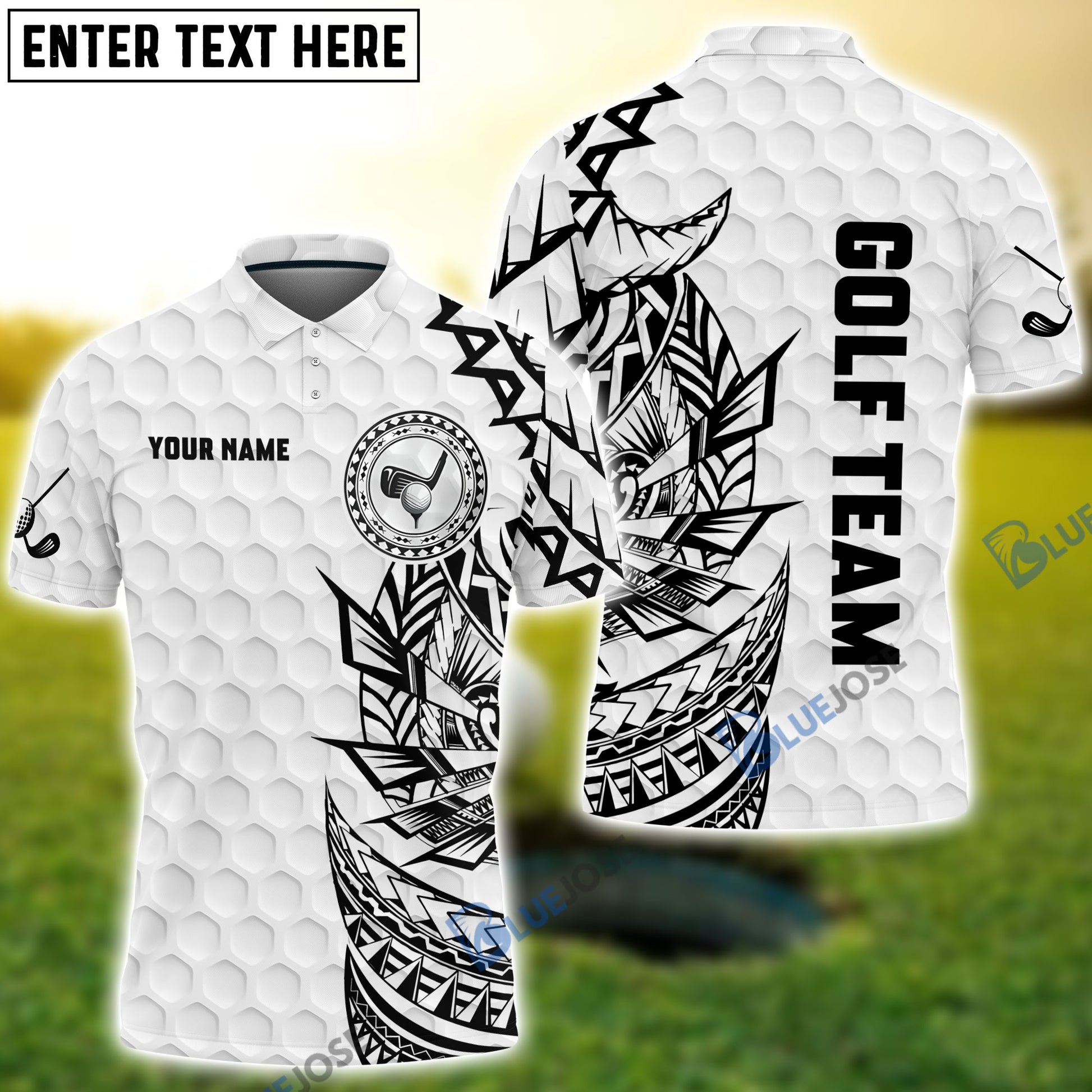 BlueJose Golf Pattern Tribal Personalized Name, Team Name Polo Shirt