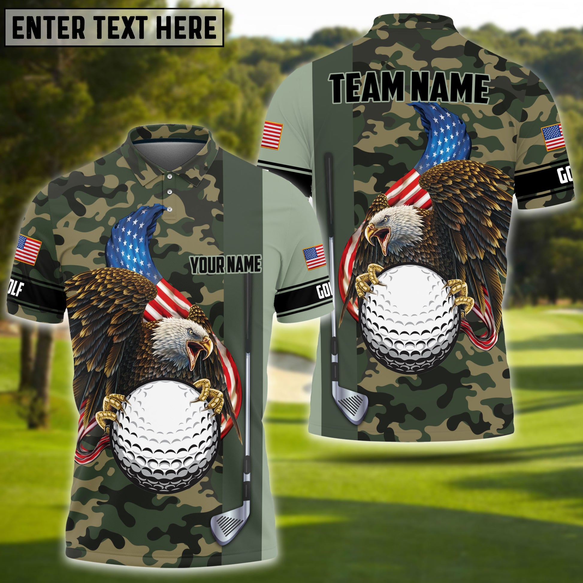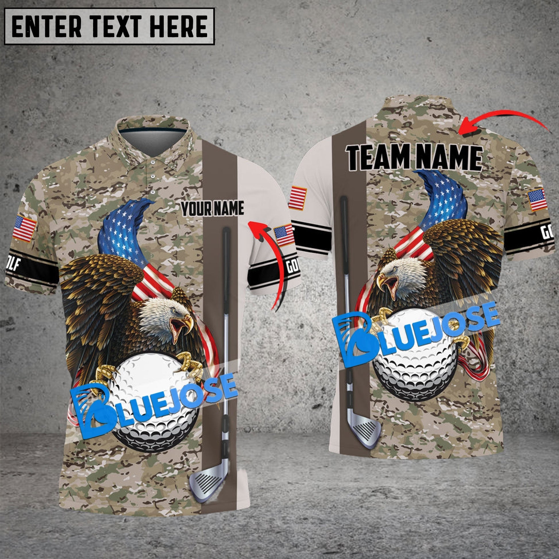 BlueJose Golf Premium Eagle US Camo Customized Name, Team Name 3D Shirts (4 Colors)