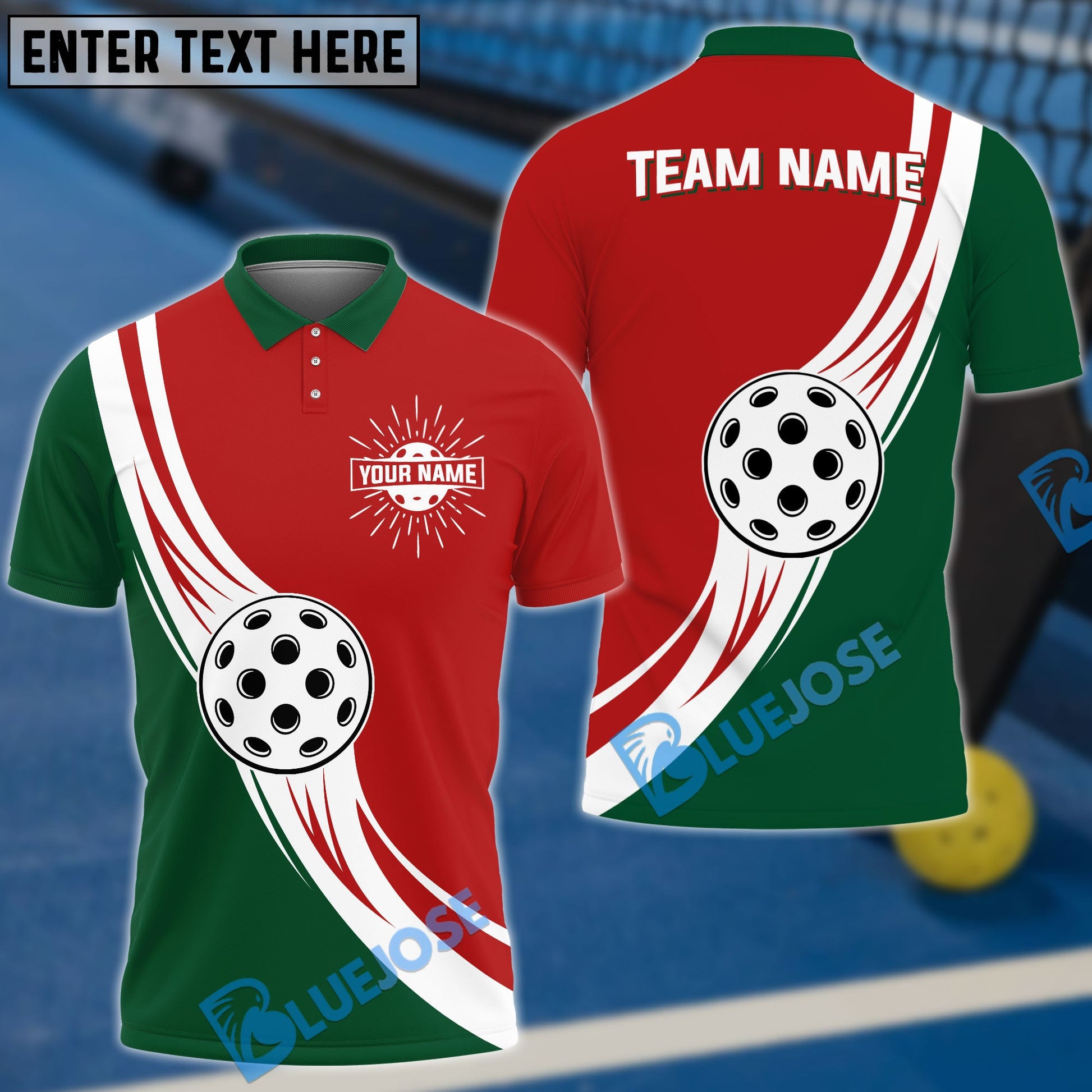 BlueJose Pickleball Red and Green Customized Name, Team Name 3D Shirts
