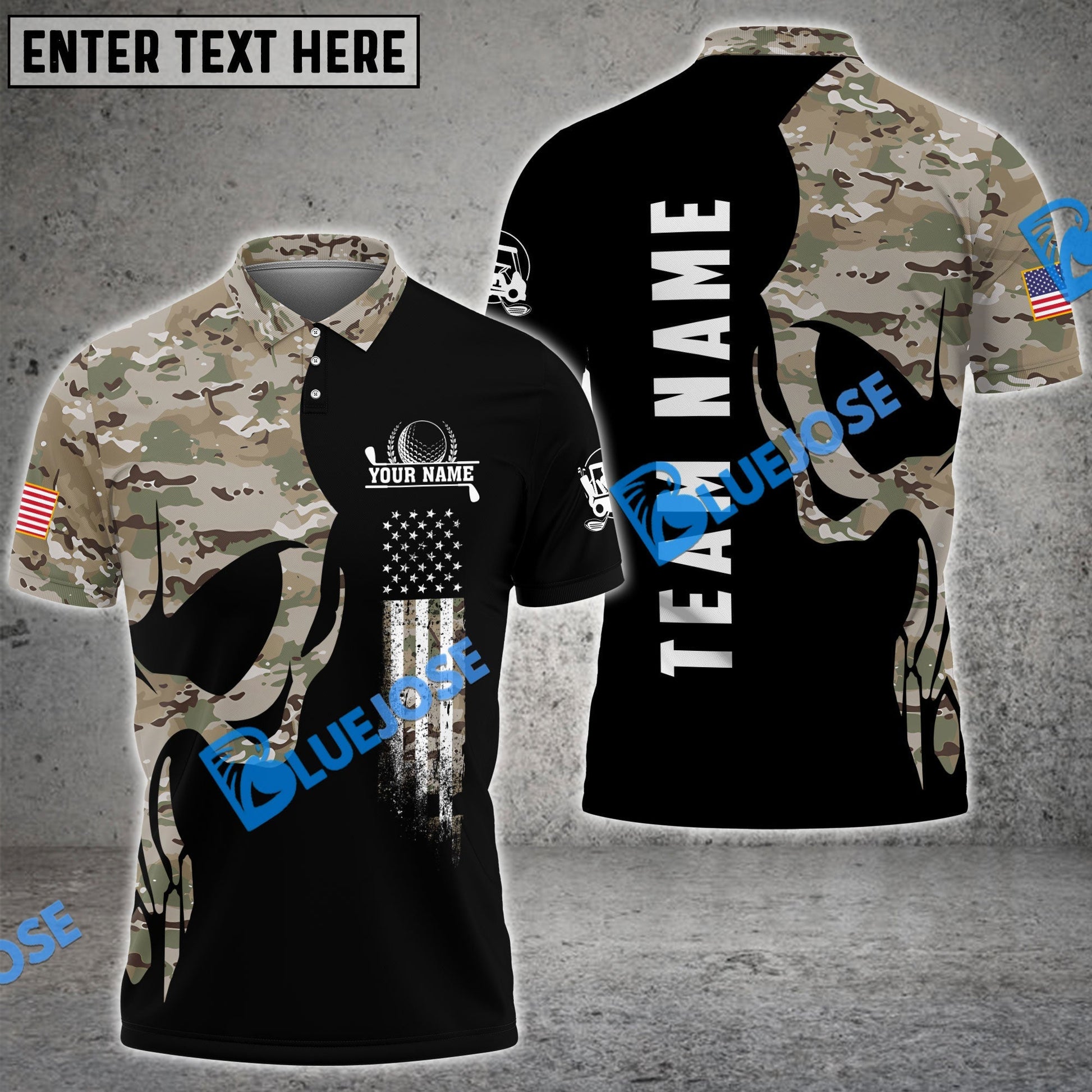 BlueJose Golf Skull Camo Customized Name, Team Name 3D Shirts (4 Colors)