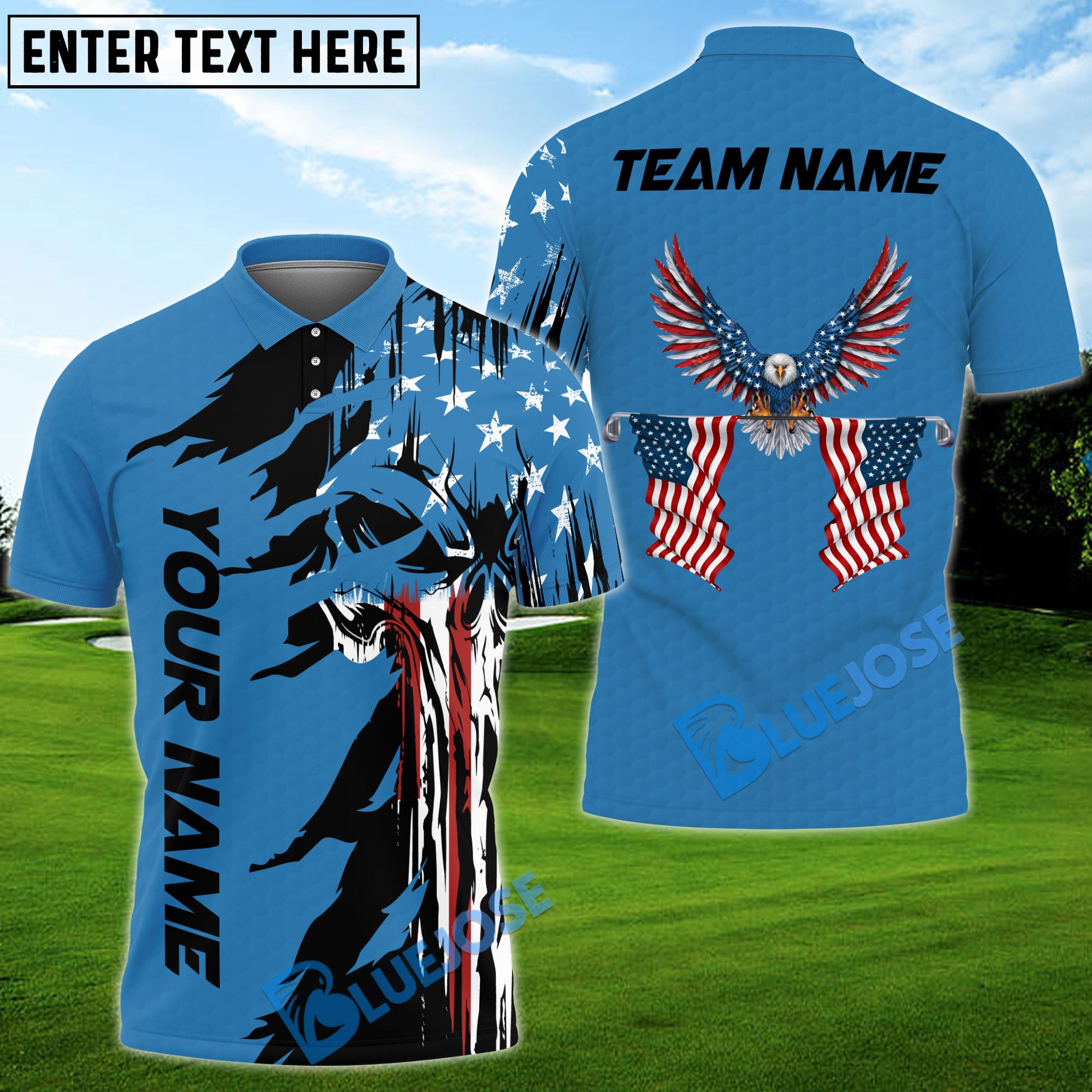 BlueJose Golf Skull US Flag Pattern Customized Name, Team Name 3D Shirts (4 Colors)