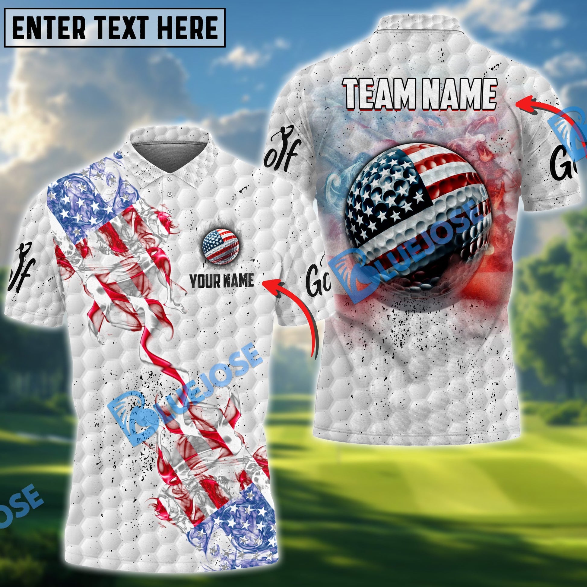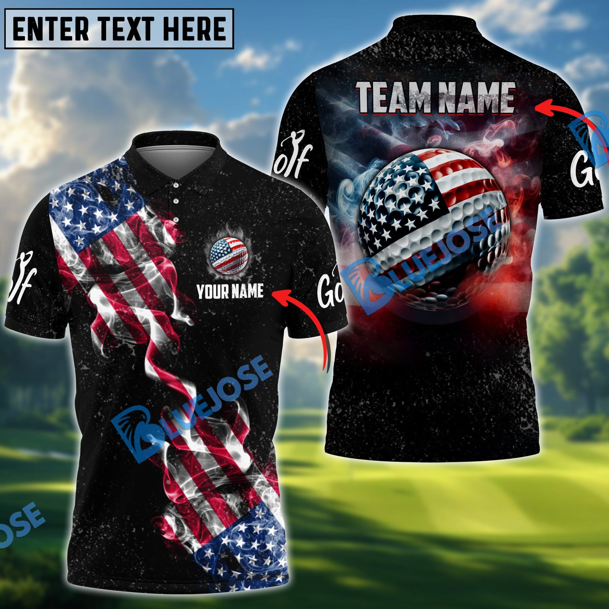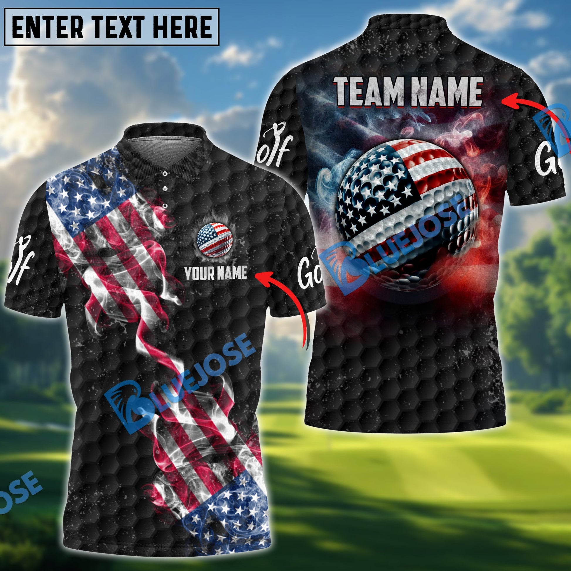 BlueJose Golf Smoke Grunge US Flag Customized Name, Team Name 3D Shirts (4 Colors)