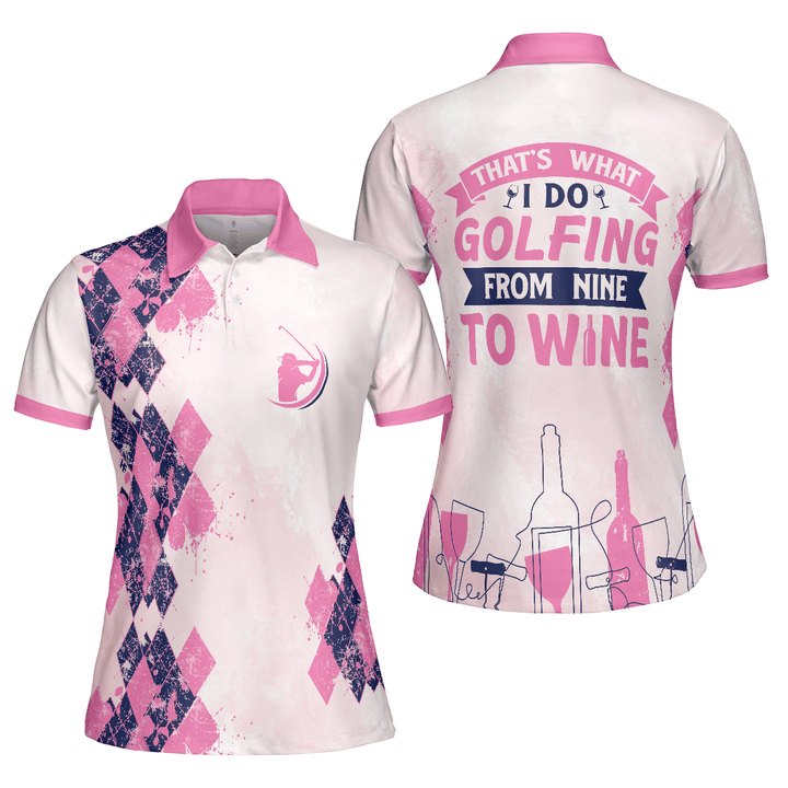 BlueJose Golfing From Nine To Wine Women Polo Shirt
