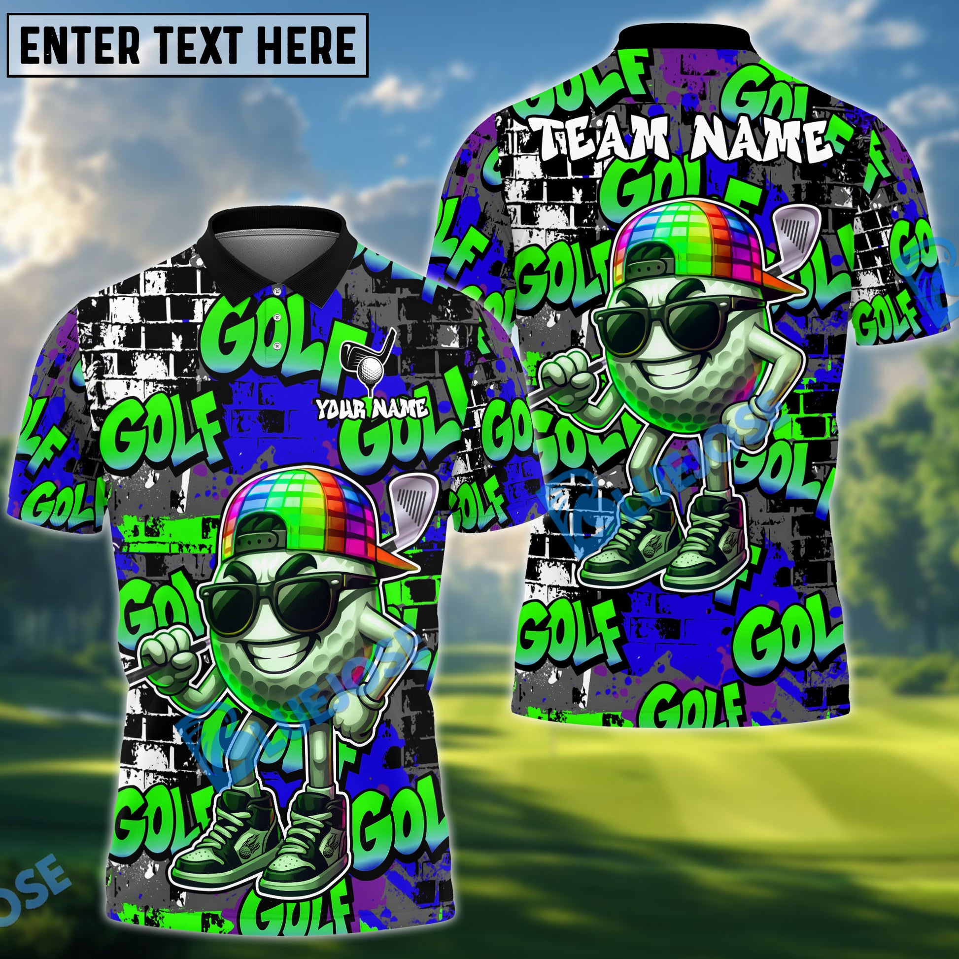 BlueJose Graffiti Swag Golf Polo Shirt, Customized Name & Team Name 3D Shirts (4 Colors)