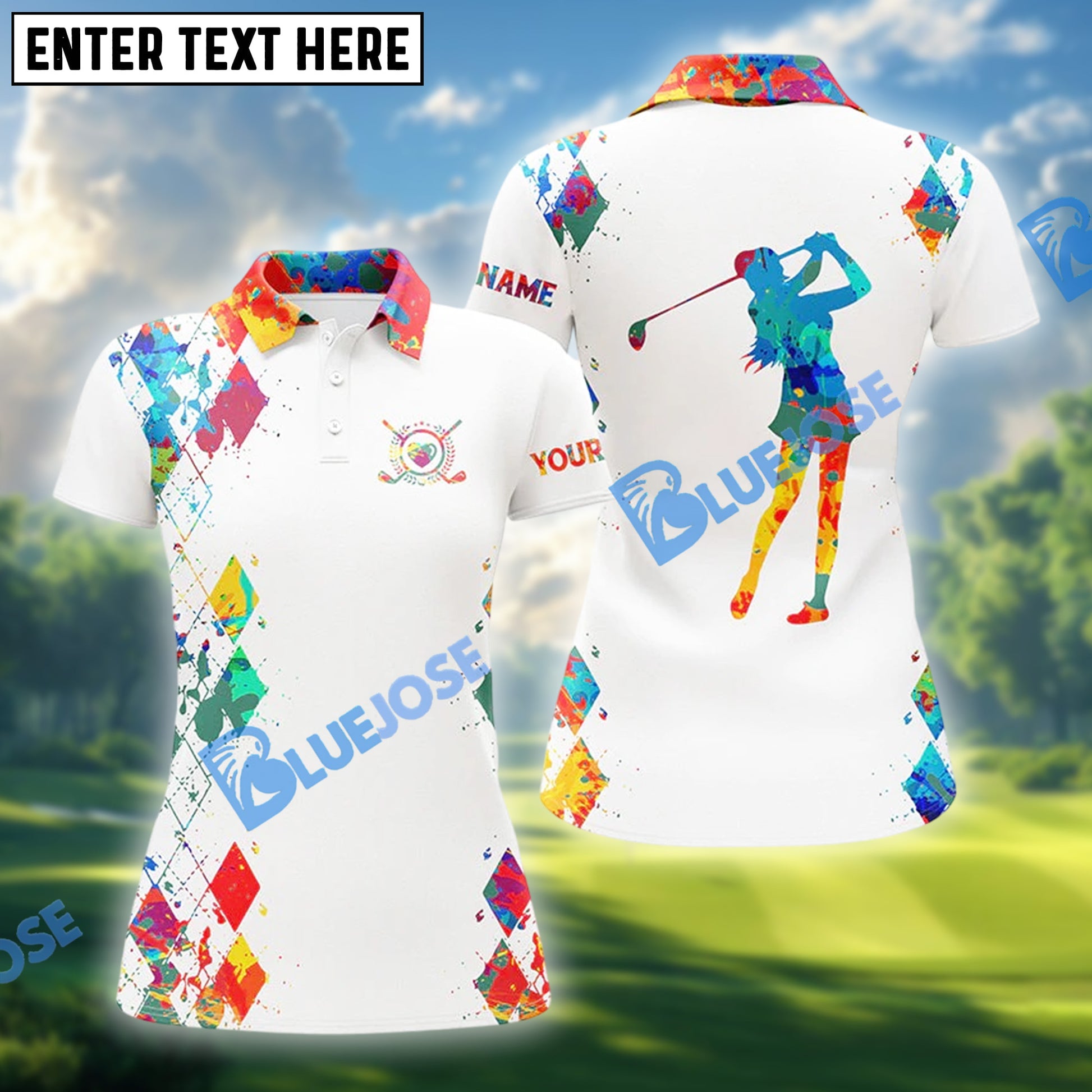 BlueJose White Watercolor Golf Polo Shirt, Custom Name & Team Name 3D Shirt