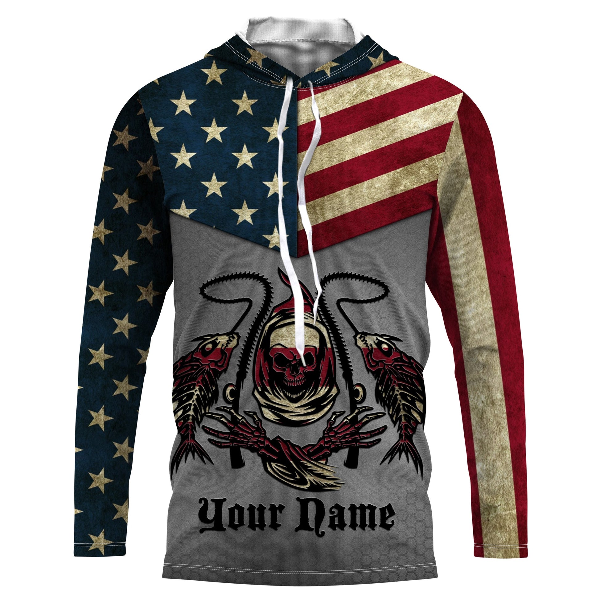 BlueJose Halloween American Flag Fish Reaper Custom Long Sleeve Shirts