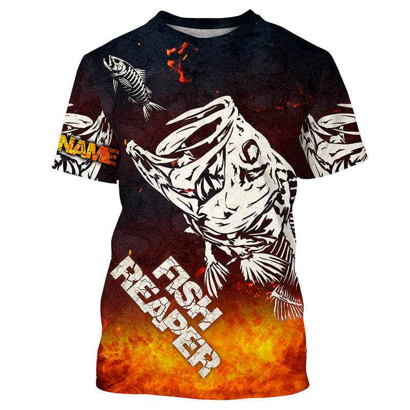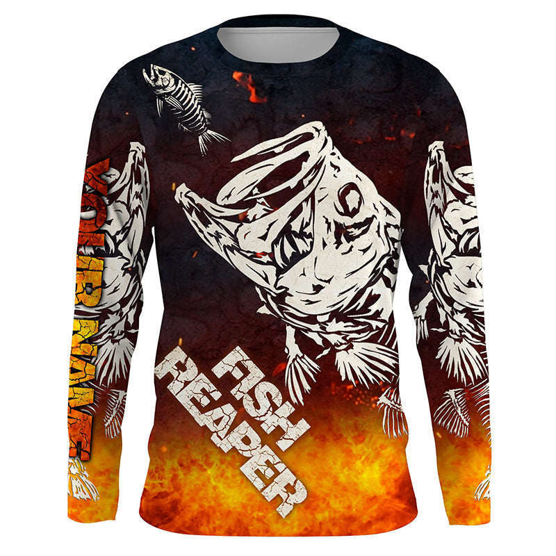 BlueJose Halloween Fish Reaper Bass Skull Fishing Long Sleeve Fishing Shirt